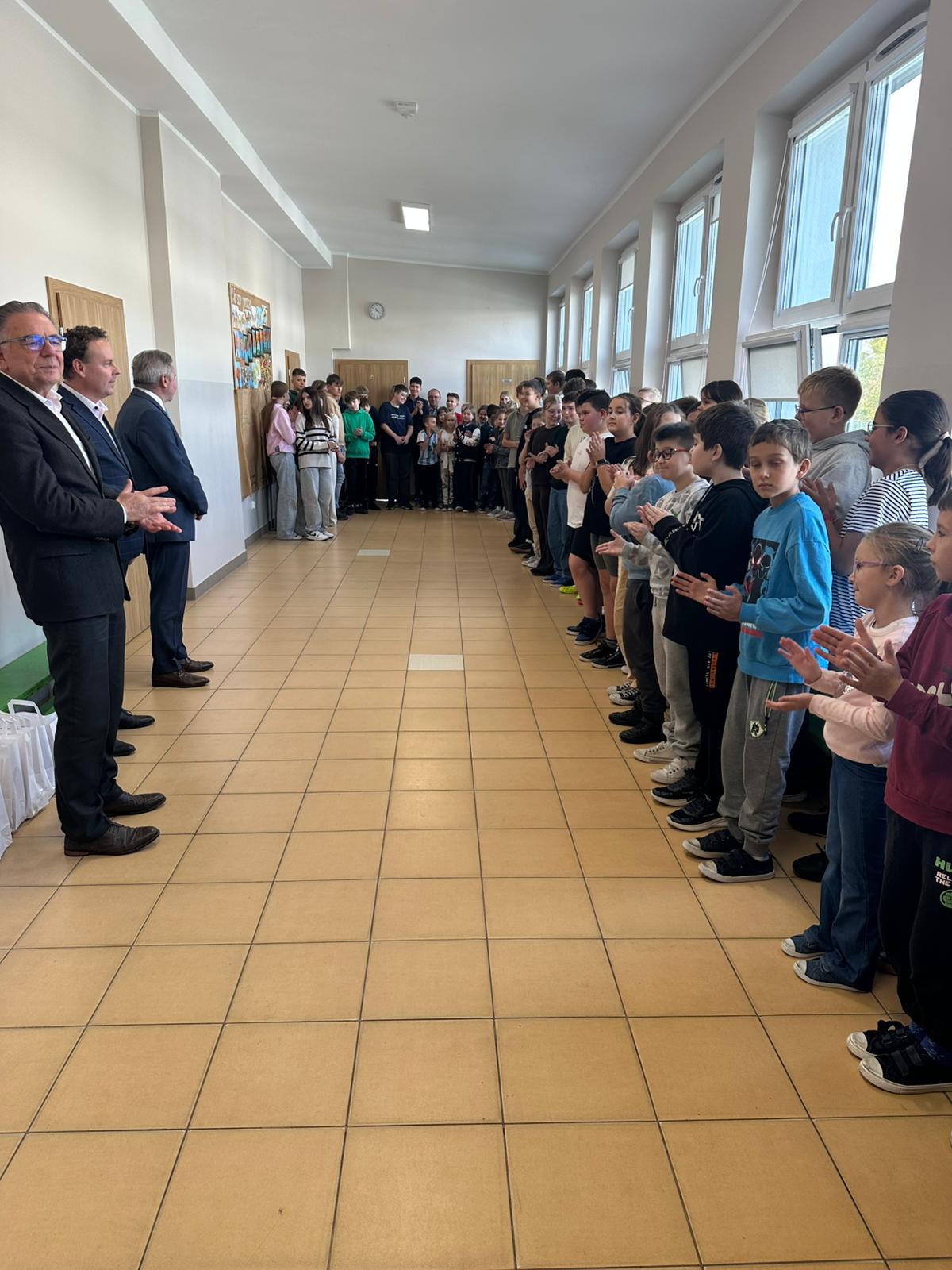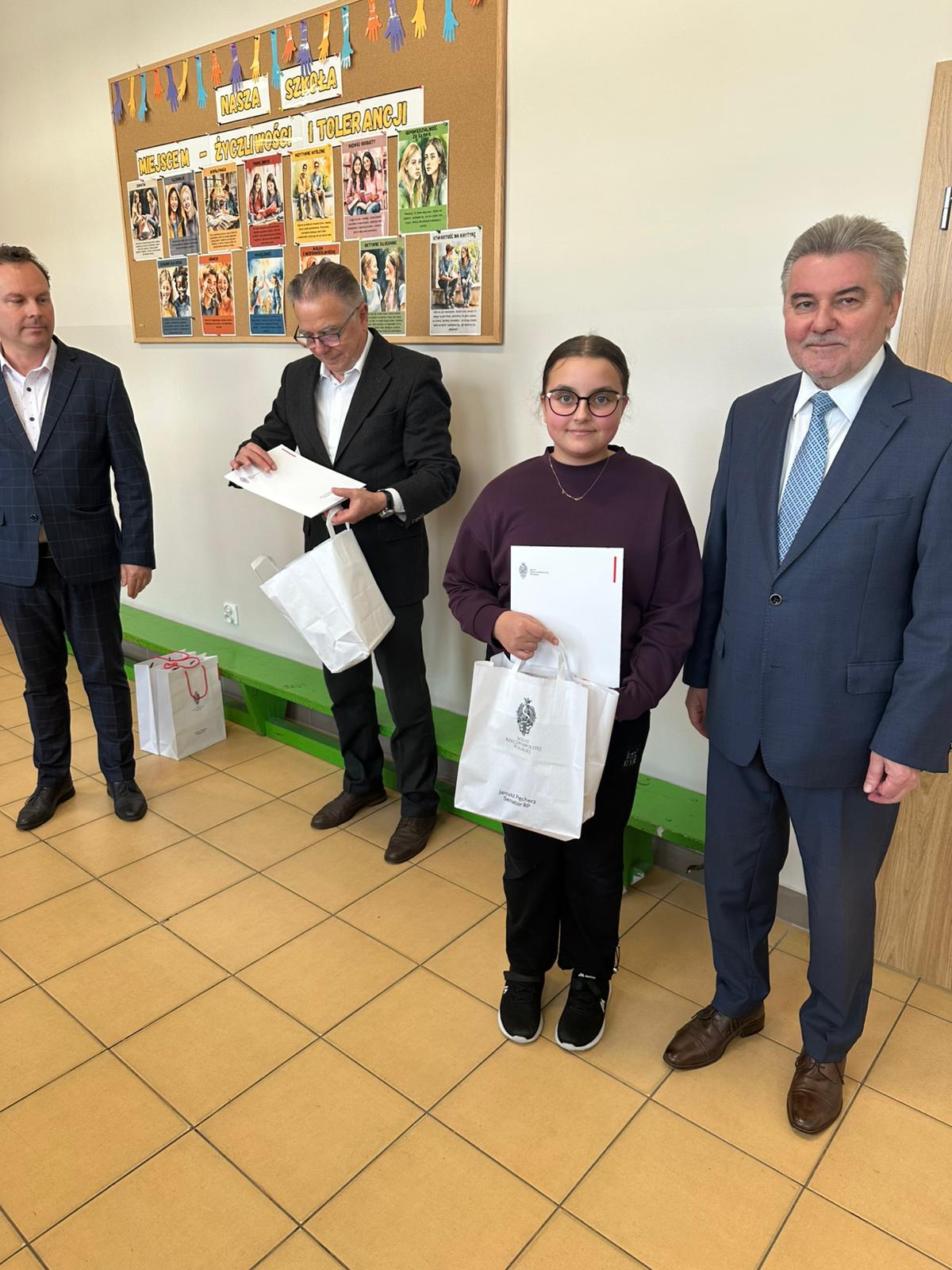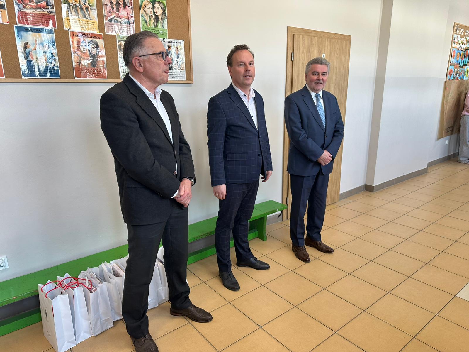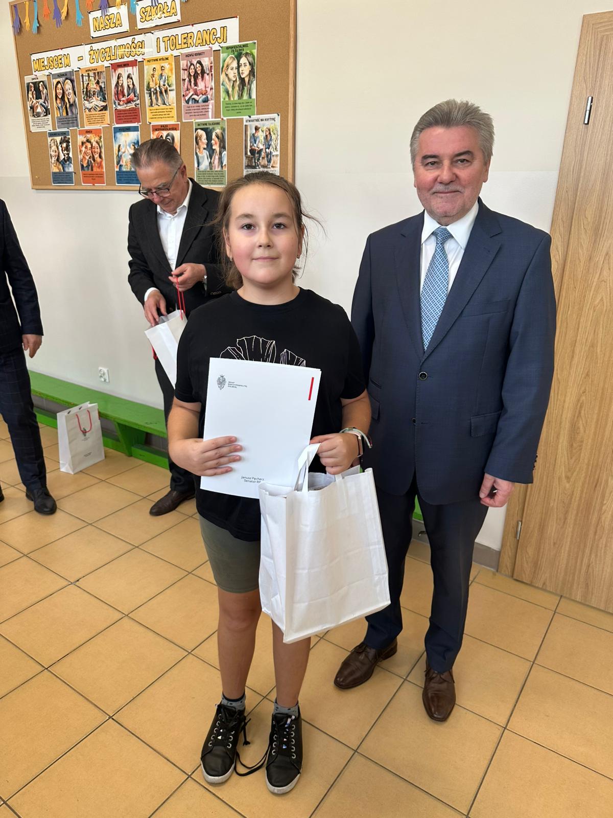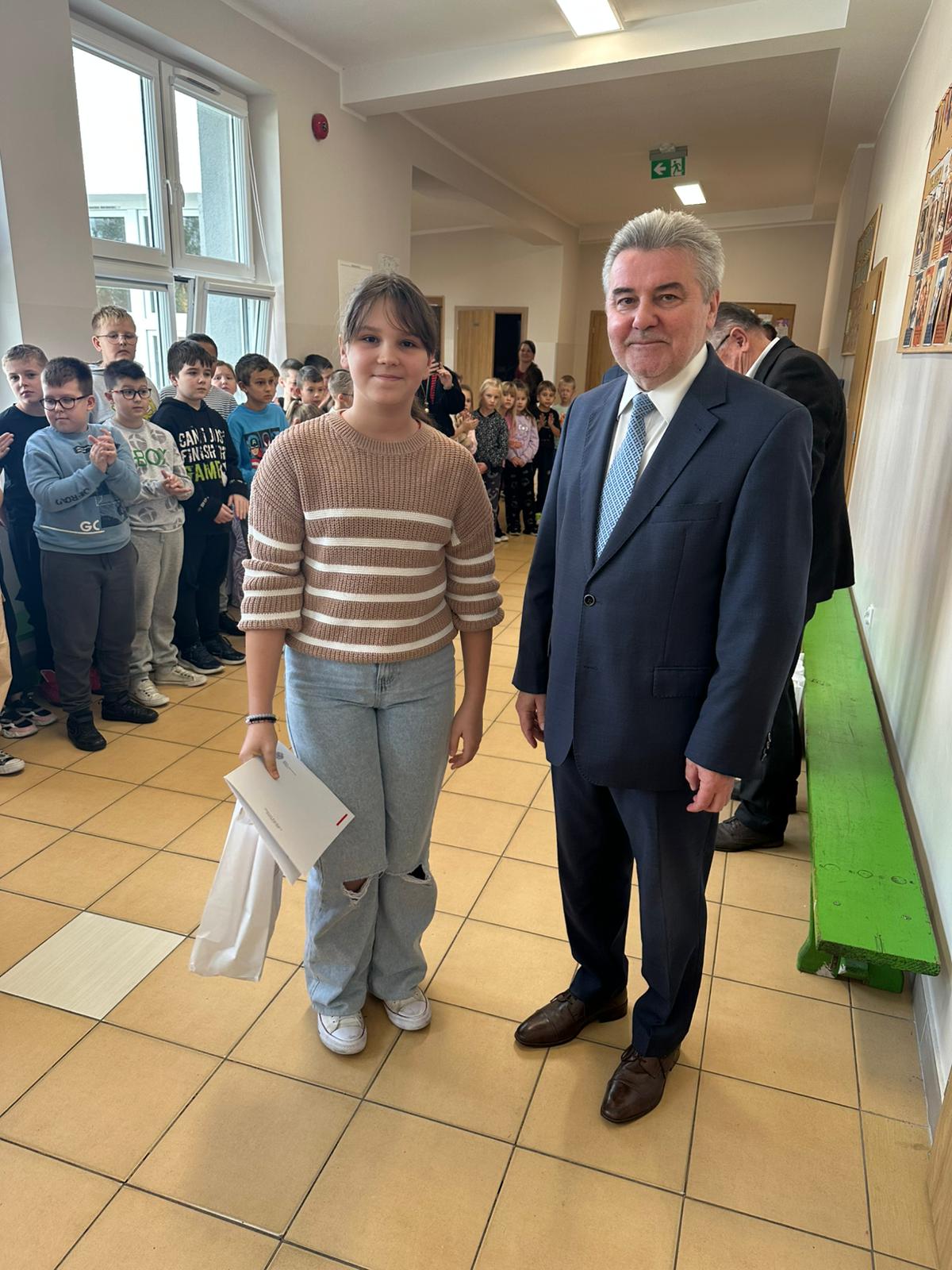 22.10.2025r. gościli w naszej szkole senator RP Janusz Pęcherz oraz dyrektor biura senatorskiego Daniel Sztandera. Głównym celem wizyty było wręczenie nagród uczniom biorącym udział w konkursie List do Taty.