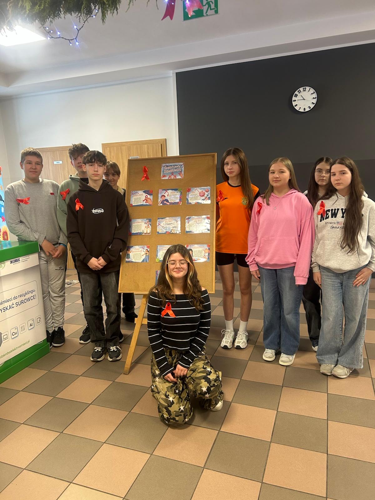 Dzisiaj nasi uczniowie przygotowali gazetkę z okazji Światowego Dnia Walki z Aids oraz symboliczne wstążki symbolizujące ten dzień. W klasach starszych będzie również omówiaona prezentacja n/t profilaktyki waliki z HIV i AIDS. Dziękujemy wszystki za włączenie się do akcji.