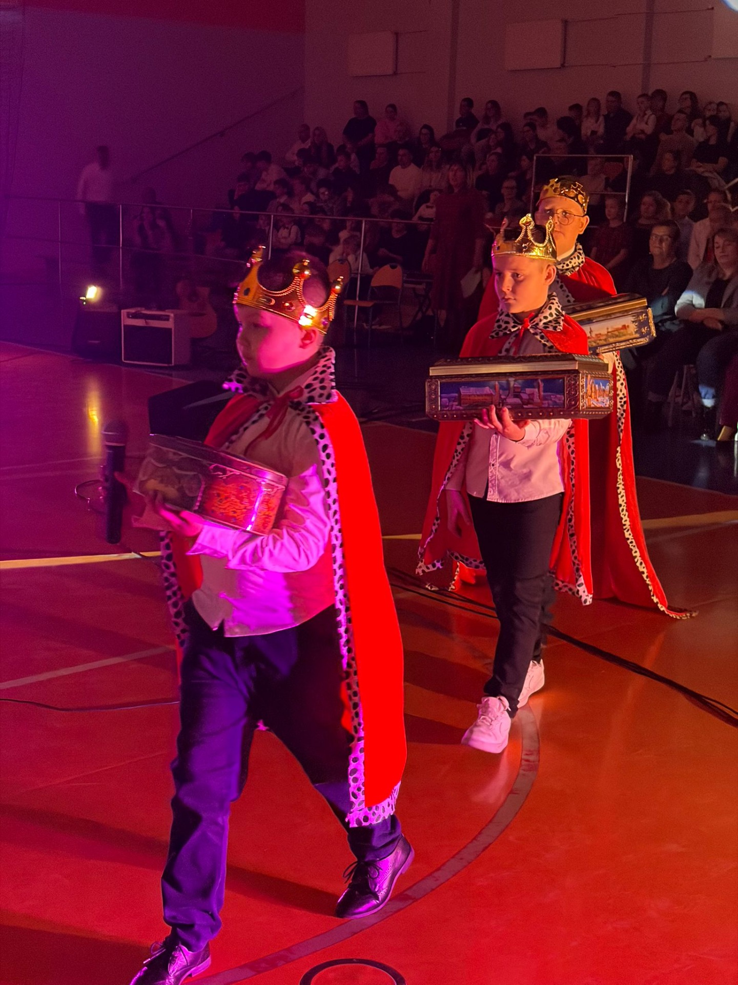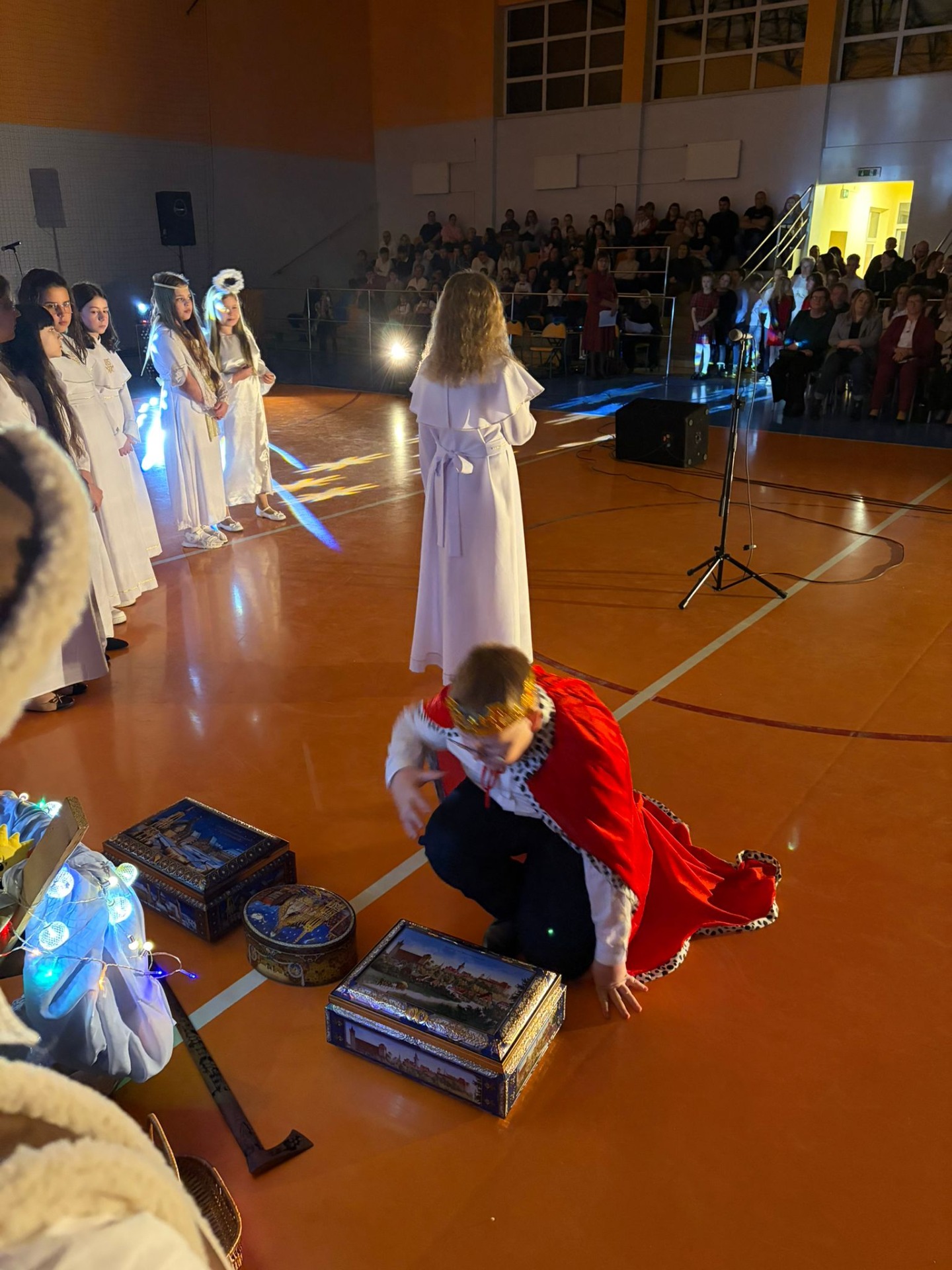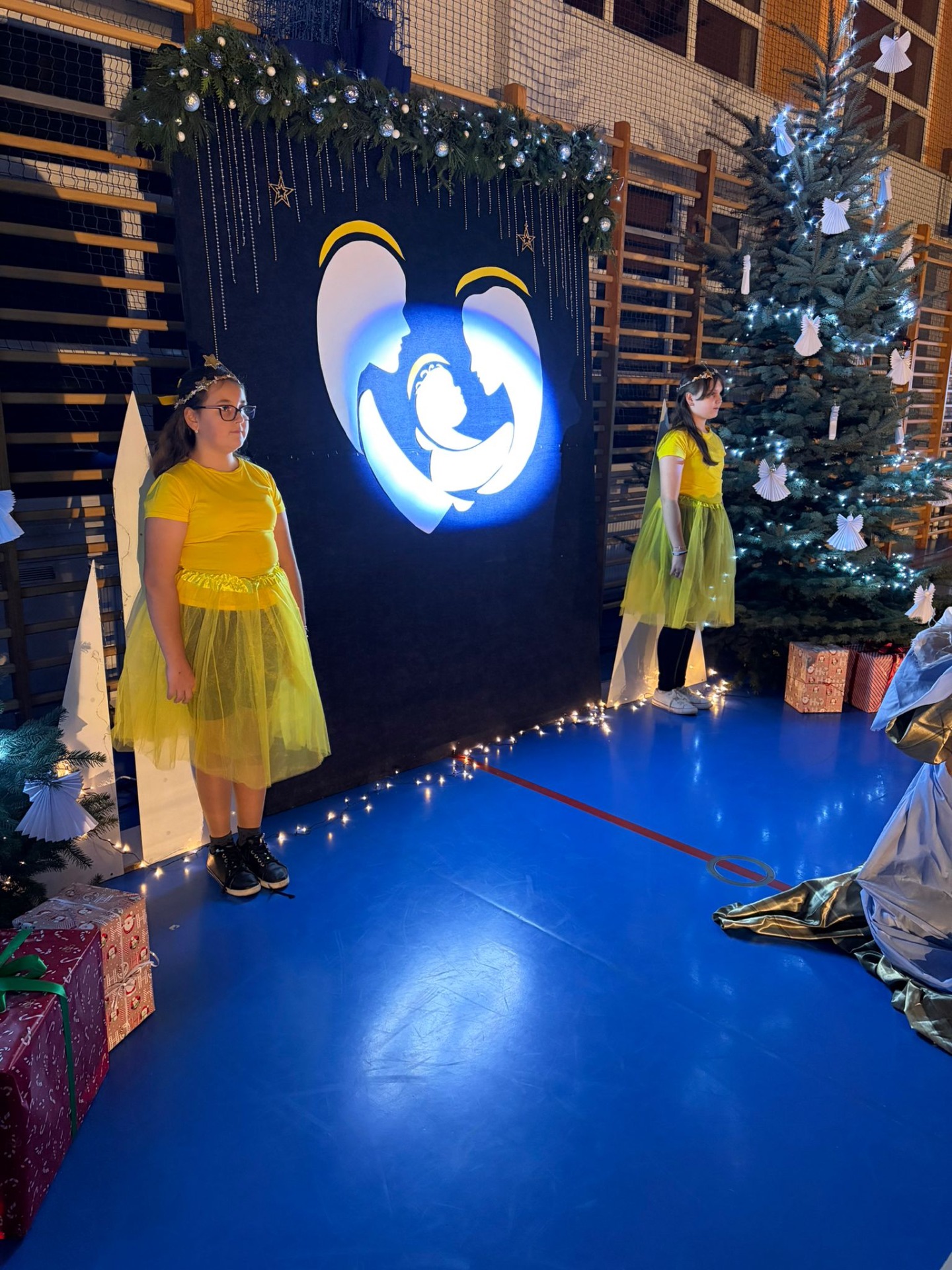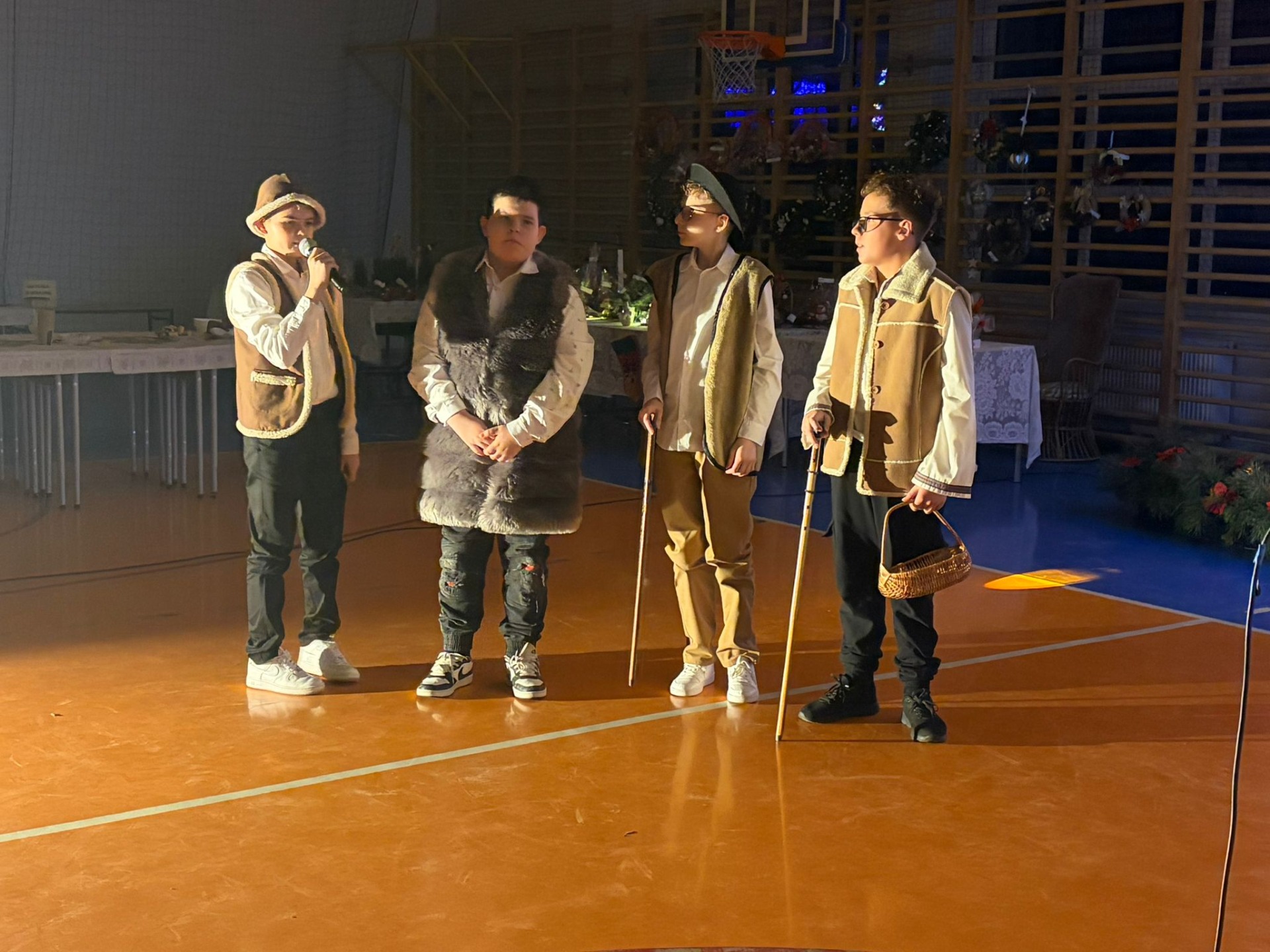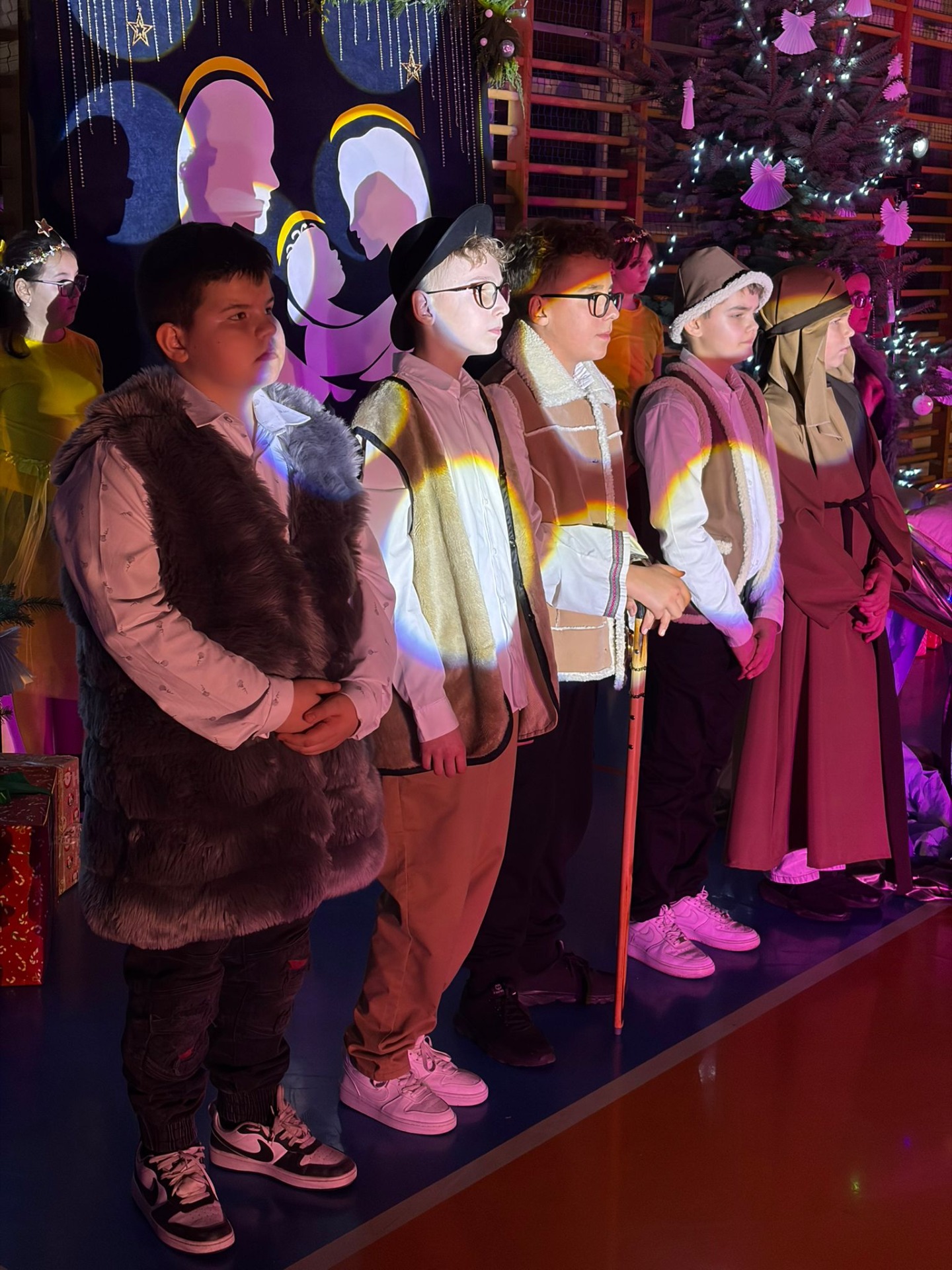 Uczniowie z kl. VI, V, IV a także z kl. I, III, II również przedszkolaki zaprezentowali jasełka pt.” Jedna jest taka noc”. Do występów uczniów przyczyniły się: p. A. Jankowska – chór i wykonania solowe małych artystów; p. Ż. Zygmunt przygotowanie tekstów , deklamację i dykcję. P. A. Chorąży wykonała dekorację przy współpracy z rodzicami i pracownikami obsługi. Piosenkę „jest taki dzień” przygotowały panie z przedszkola z dziećmi przy współudziale rodziców. Koordynatorem szkolnych wydarzeń była p. K. Milewska.