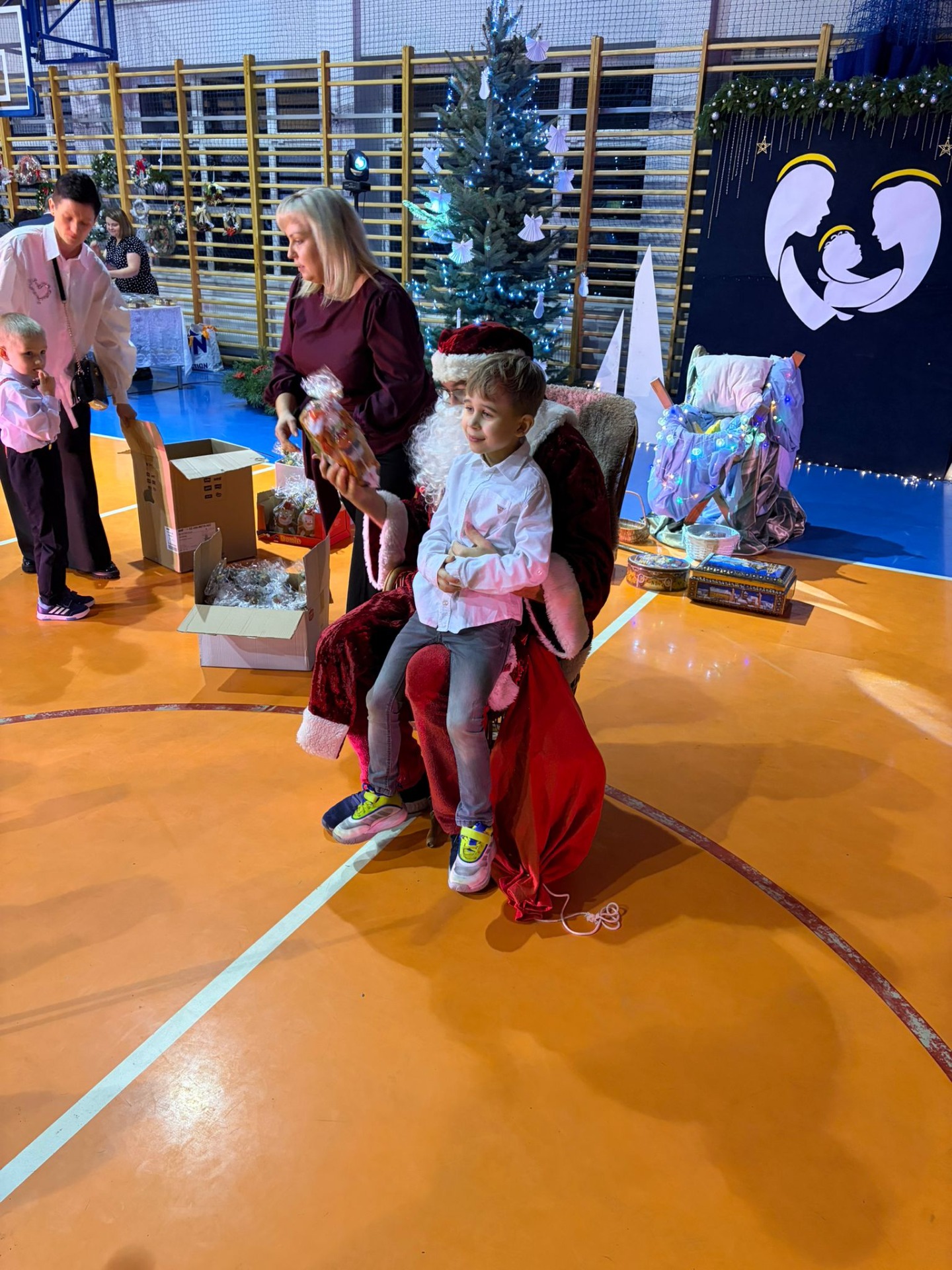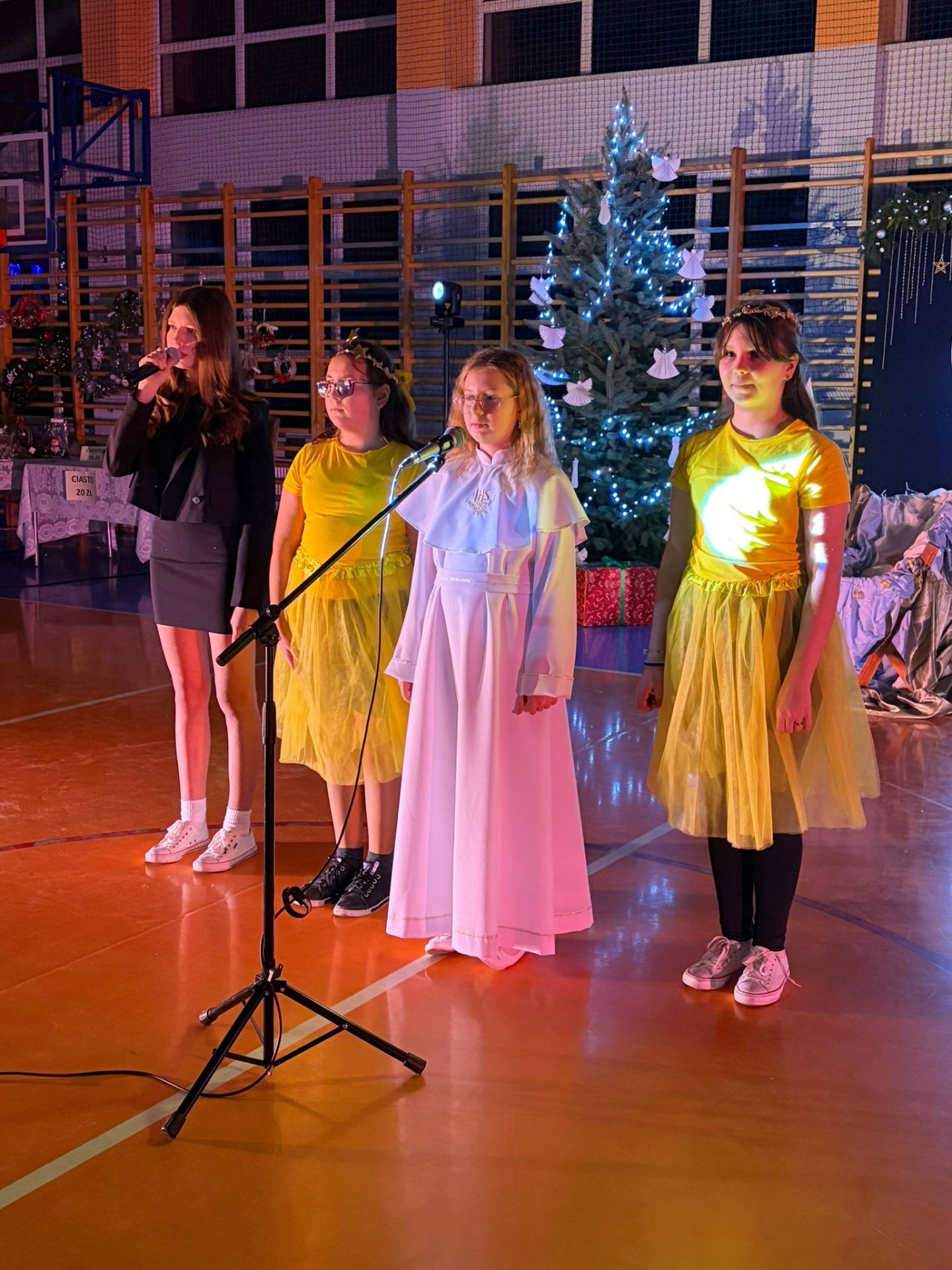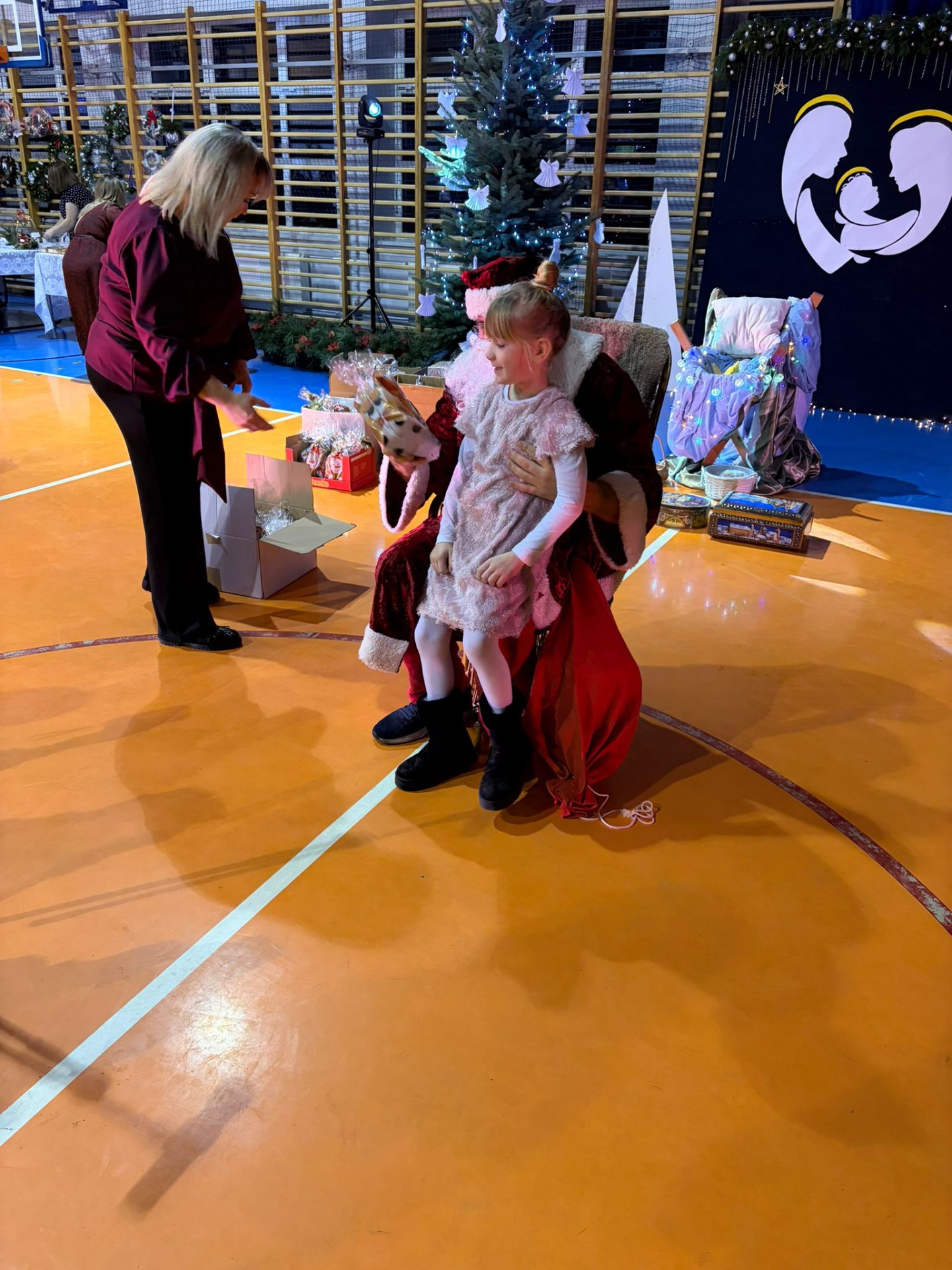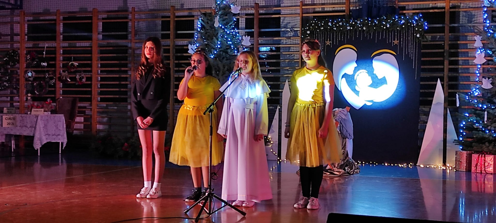 Rada Rodziców na sali gimnastycznej przygotowała kiermasz ozdób świątecznych i ciast, który cieszył się dużym zainteresowaniem. Zaproszeni goście i rodzice mogli skosztować wigilijne potrawy.