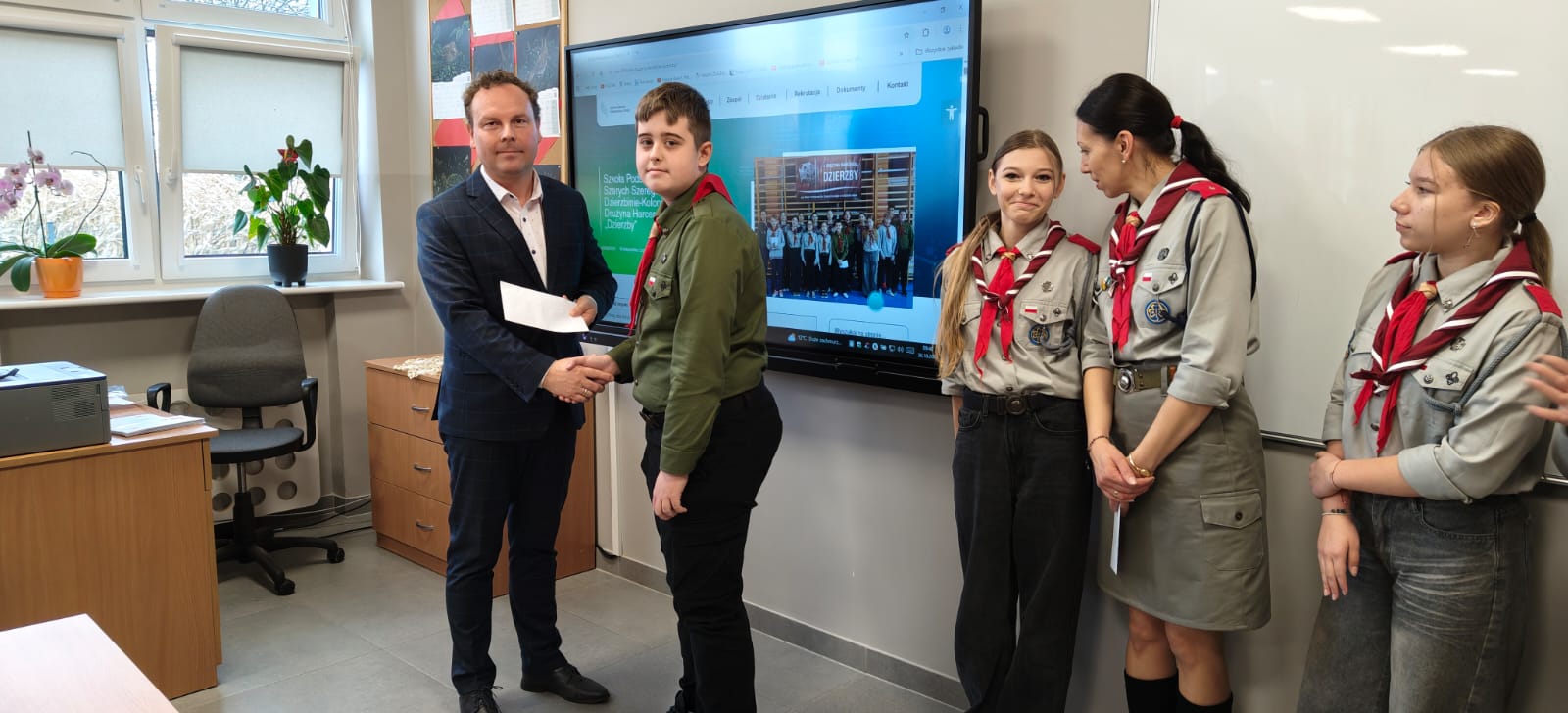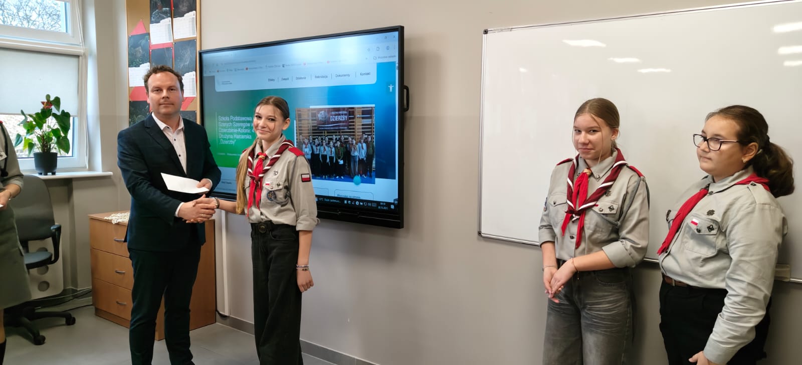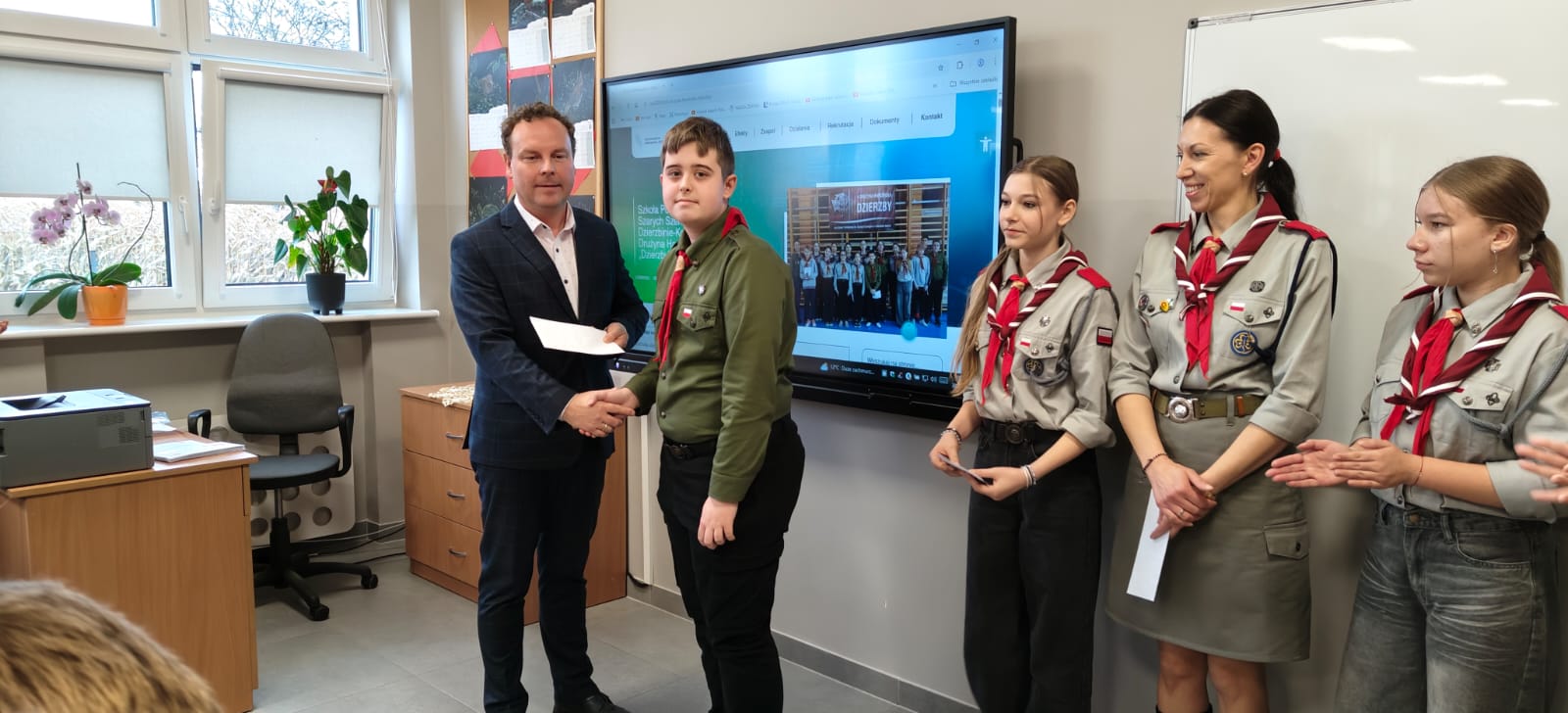 W środę 30 października odbyło się uroczyste wręczenie nagród członkom 4 DH „Dzierzby”, których praca zdobyła wyróżnienie w I edycji projektu Województwa Wielkopolskiego Cyfrowa Szkoła Wielkopolsk@ 2030. Każdy uczestnik otrzymał kartę podarunkową o wartości 1000 zł. Zespół uczniowski złożony z 13 harcerzy 4 DH w roku szkolnym 2024/2025 uczestniczył w zajęciach pozalekcyjnych Wielkopolska Encyklopedia Cyfrowa prowadzonych przez drużynową – Barbarę Wieczorkiewicz. W trakcie zajęć harcerze zrealizowali projekt pod tytułem „Rola 4 Drużyny Harcerskiej „Dzierzby” w historii i życiu społeczności Szkoły Podstawowej w Dzierzbinie-Kolonii”. Efekty pracy zespołu można zobaczyć na stronie: Cyfrowa Szkoła Wielkopolsk@ 2030, w zakładce Efekty.