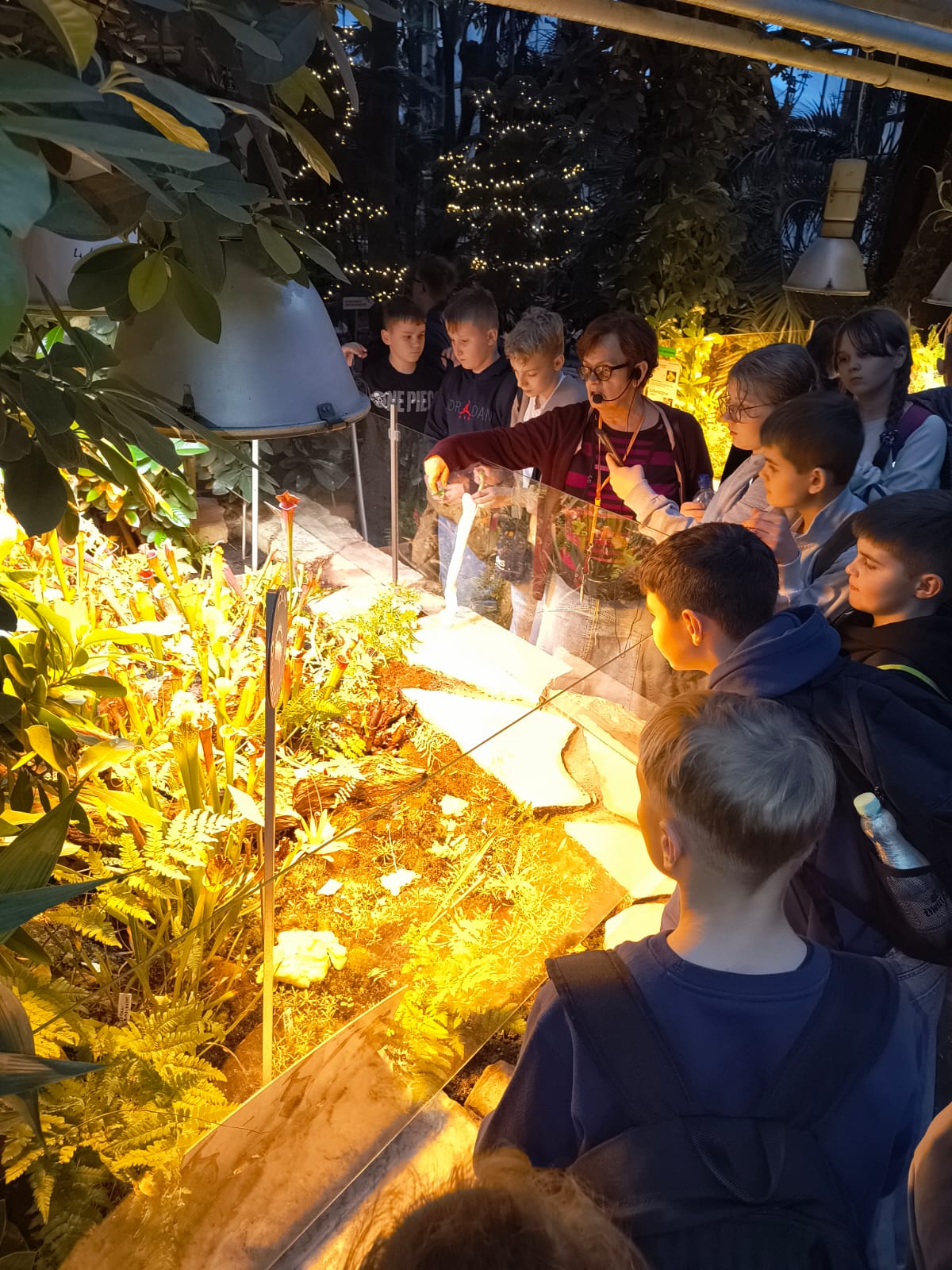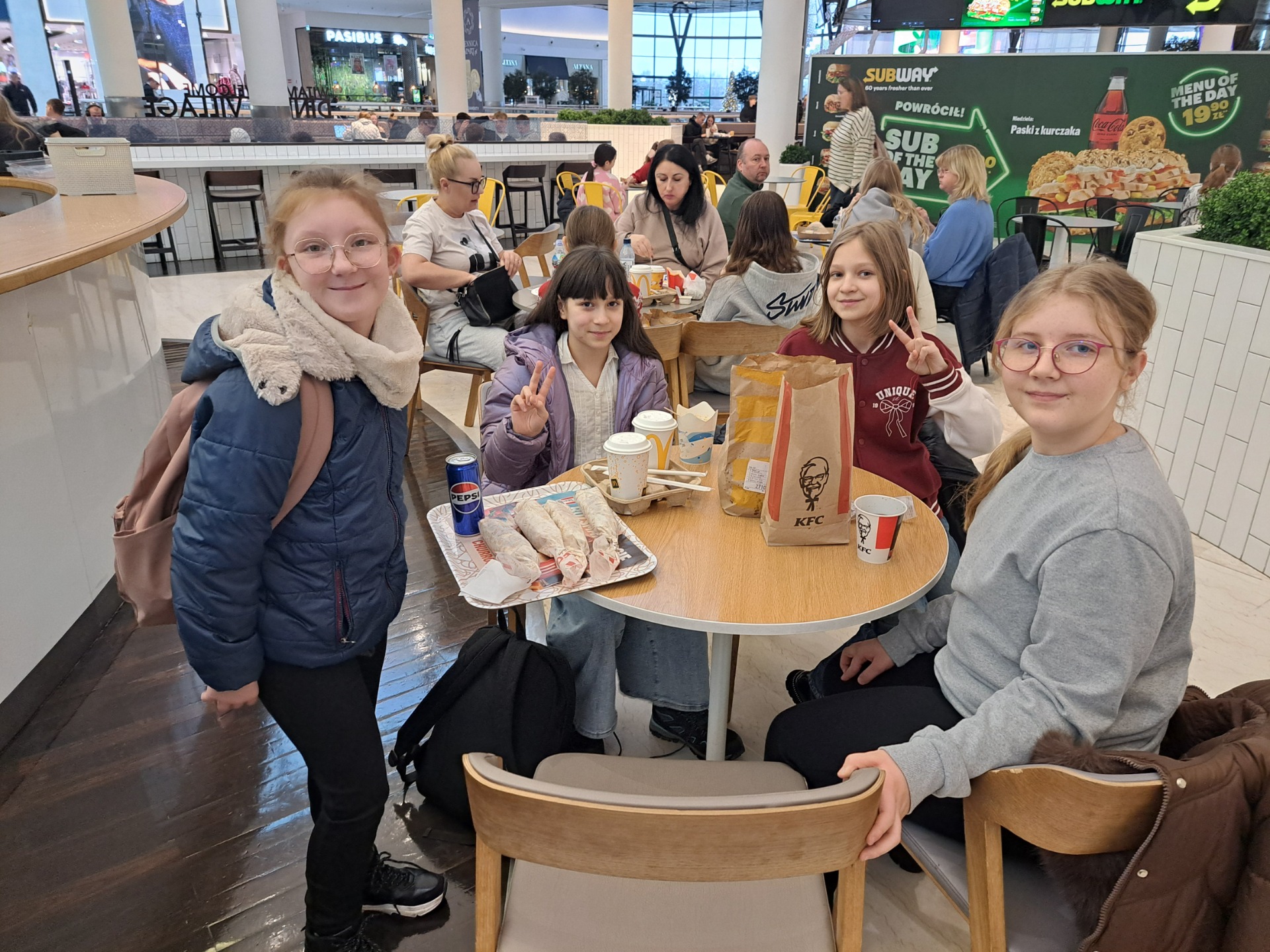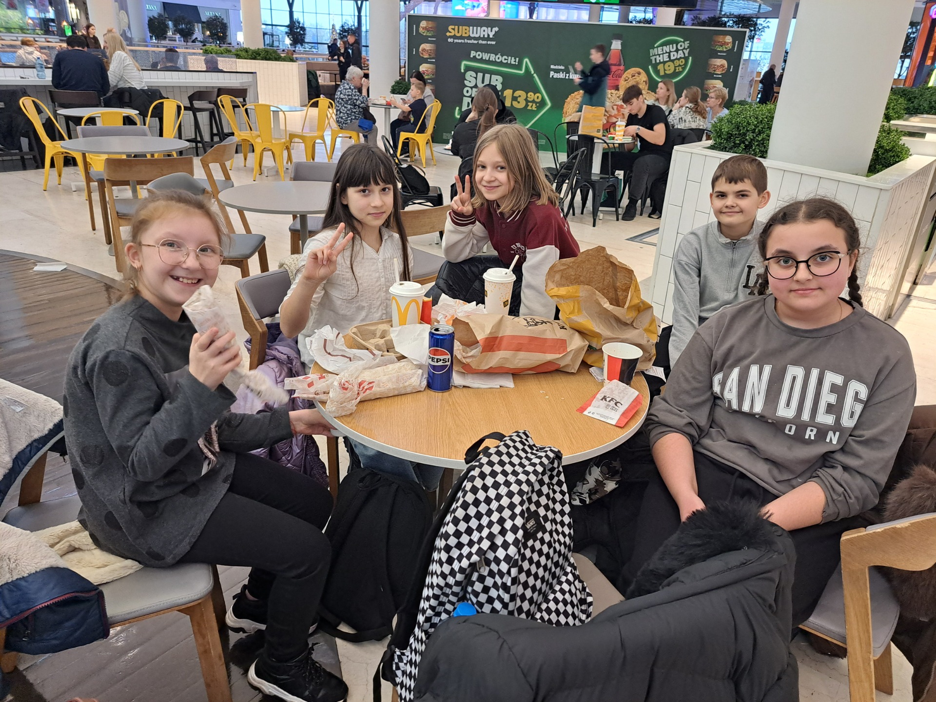 W dniu 5 grudnia uczniowie klas 5 - 8 uczestniczyli w wycieczce do Poznania, zorganizowanej w ramach projektu "Wyjście z klasą". Pierwszym punktem wyjazdu był seans filmowy w kinie Helios w galerii Posnania, gdzie wysłuchaliśmy ciekawej prelekcji na temat relacji międzyludzkich i obejrzeliśmy drugą część filmu "Zwierzogród". Po seansie przeszliśmy na obiad do strefy gastronomicznej. Ostatnim punktem wycieczki było zwiedzanie Poznańskiej Palmiarni, w której mieliśmy okazję obejrzeć wiele gatunków egzotycznych roślin oraz ptaków i ryb.