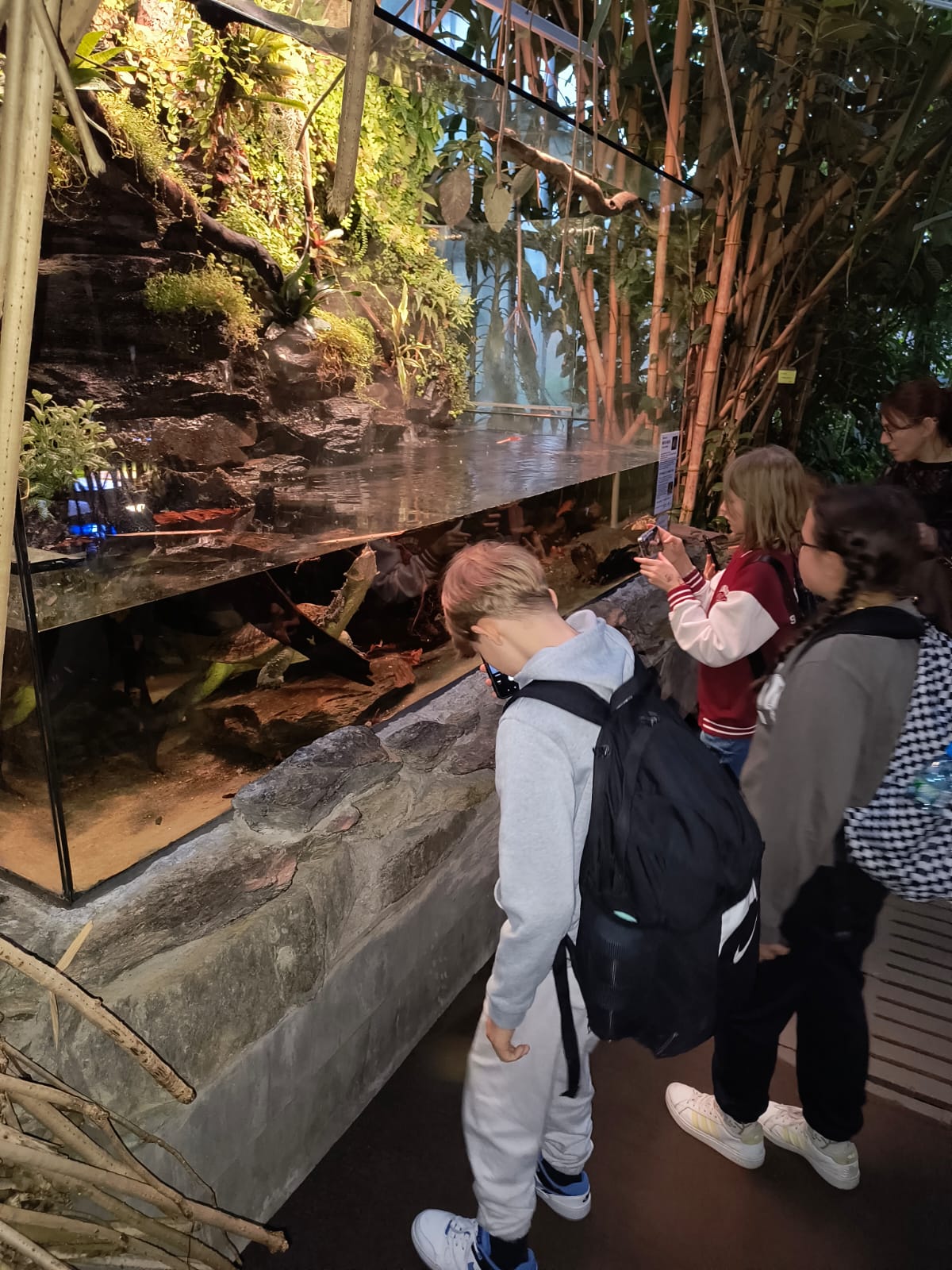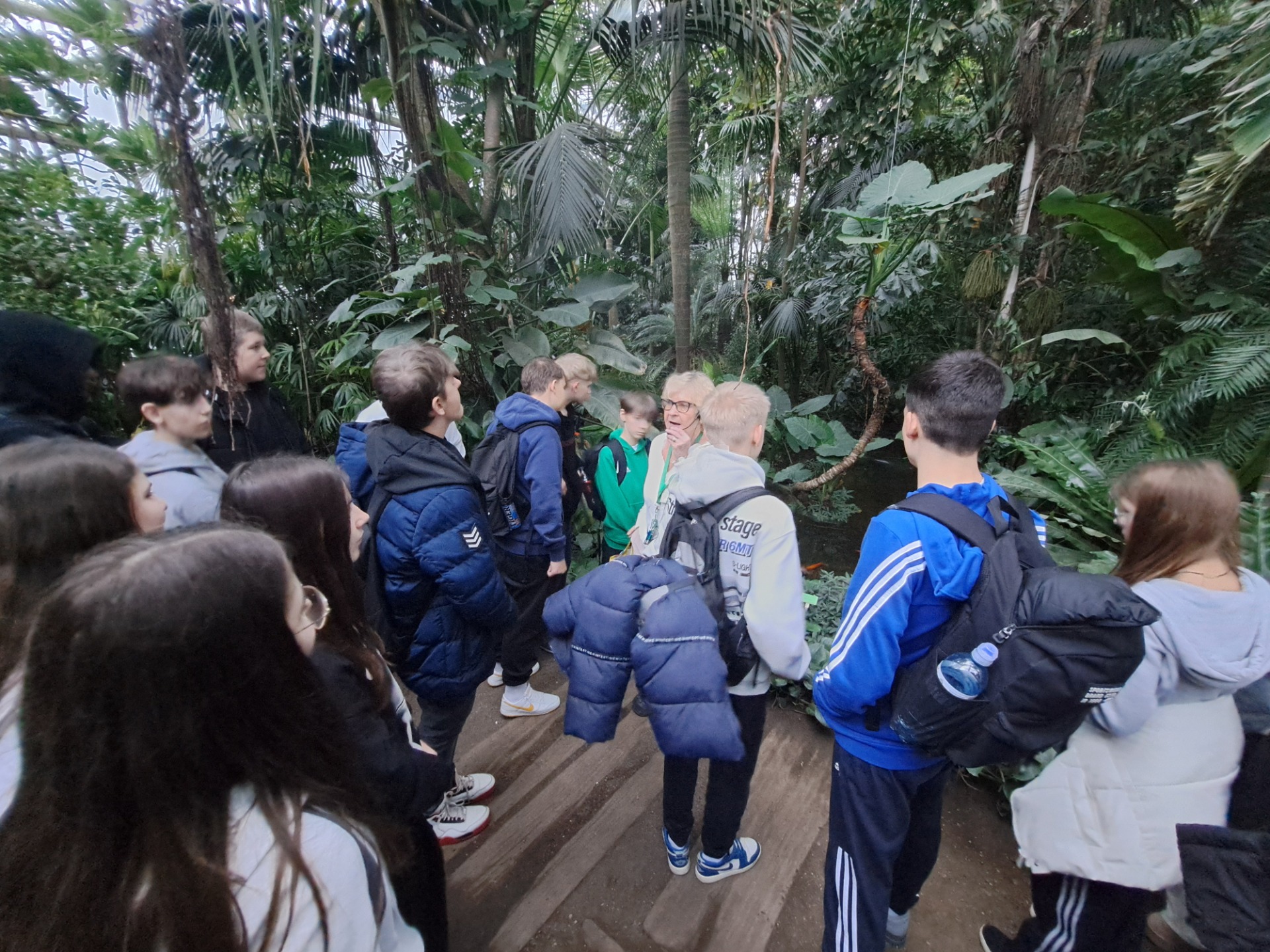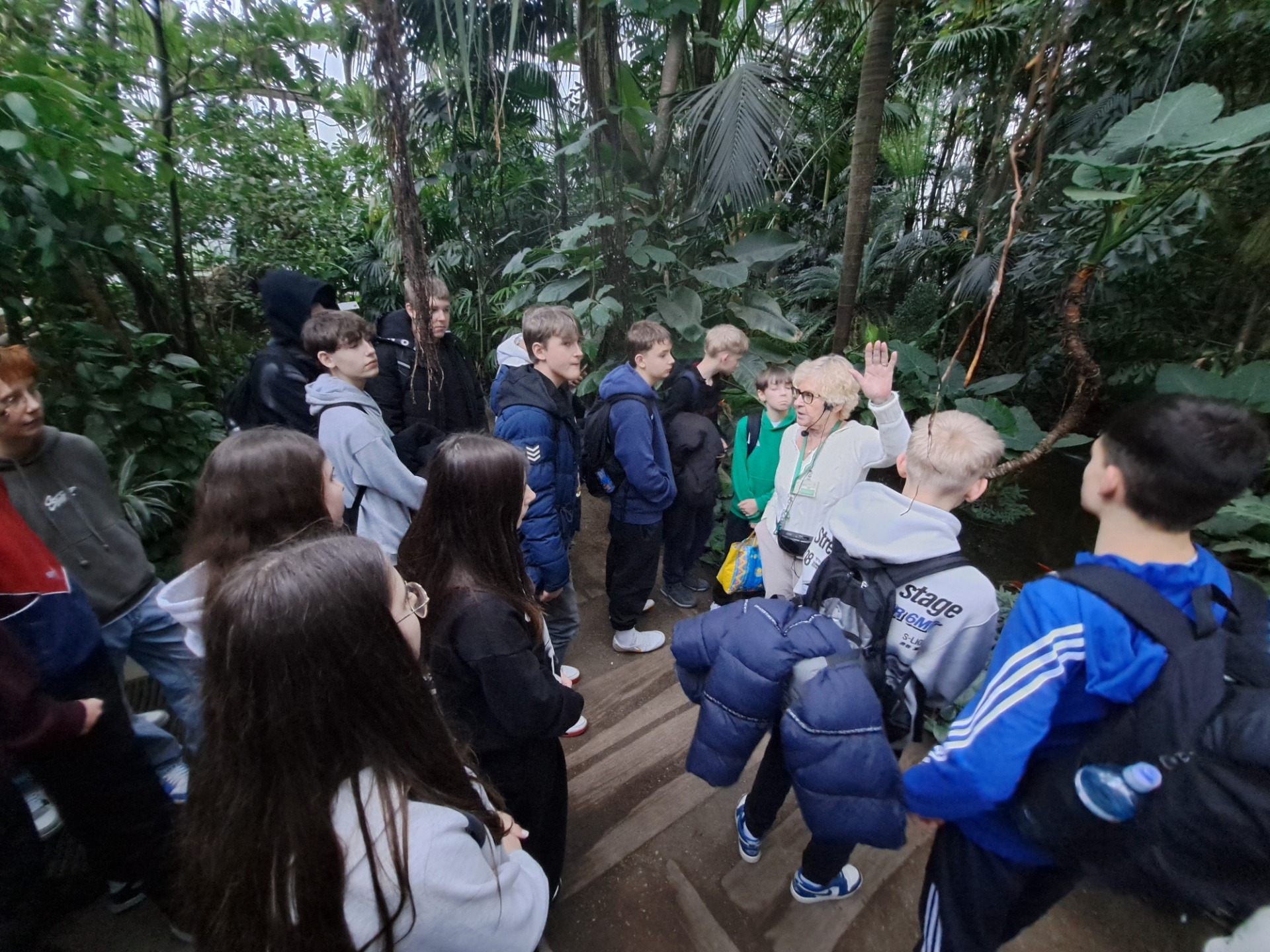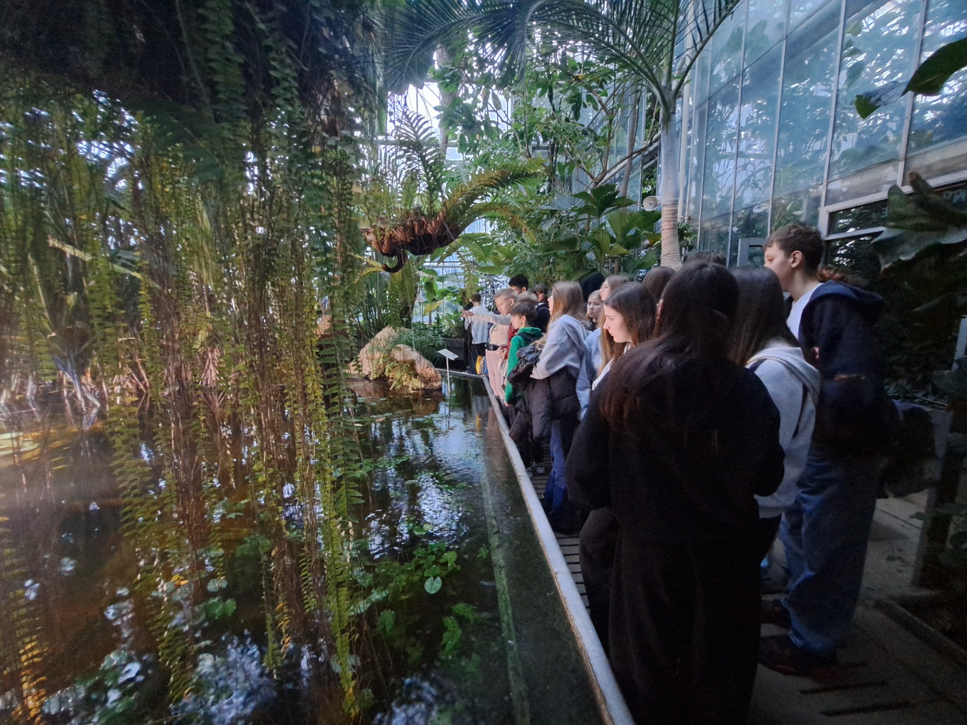 W dniu 5 grudnia uczniowie klas 5 - 8 uczestniczyli w wycieczce do Poznania, zorganizowanej w ramach projektu "Wyjście z klasą". Pierwszym punktem wyjazdu był seans filmowy w kinie Helios w galerii Posnania, gdzie wysłuchaliśmy ciekawej prelekcji na temat relacji międzyludzkich i obejrzeliśmy drugą część filmu "Zwierzogród". Po seansie przeszliśmy na obiad do strefy gastronomicznej. Ostatnim punktem wycieczki było zwiedzanie Poznańskiej Palmiarni, w której mieliśmy okazję obejrzeć wiele gatunków egzotycznych roślin oraz ptaków i ryb.