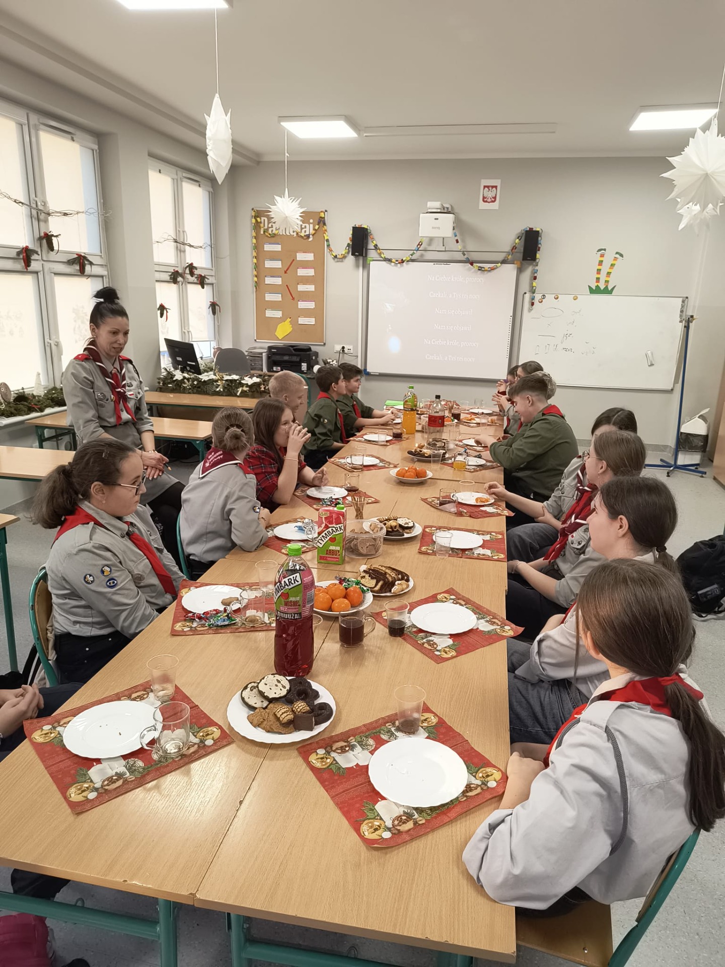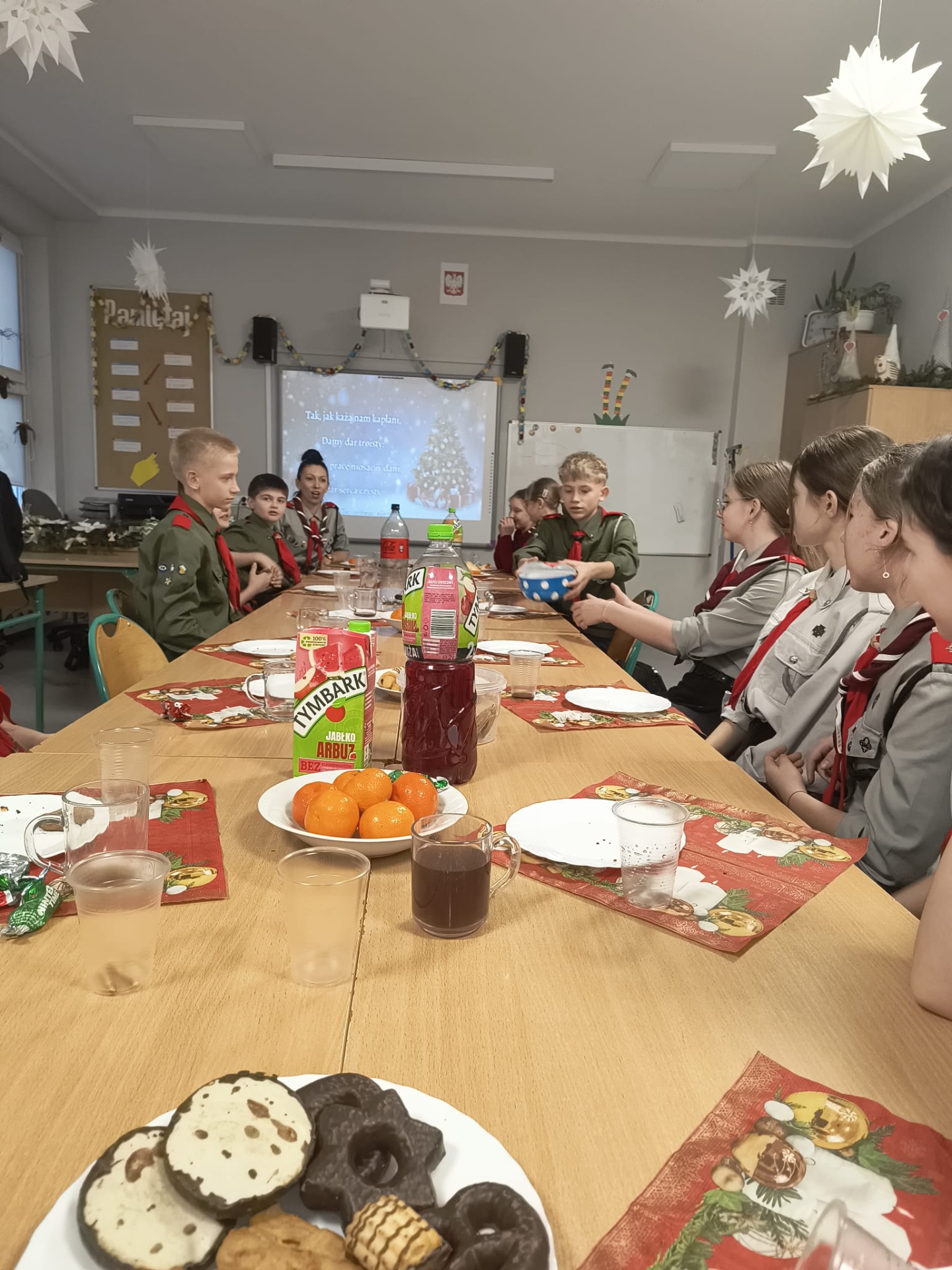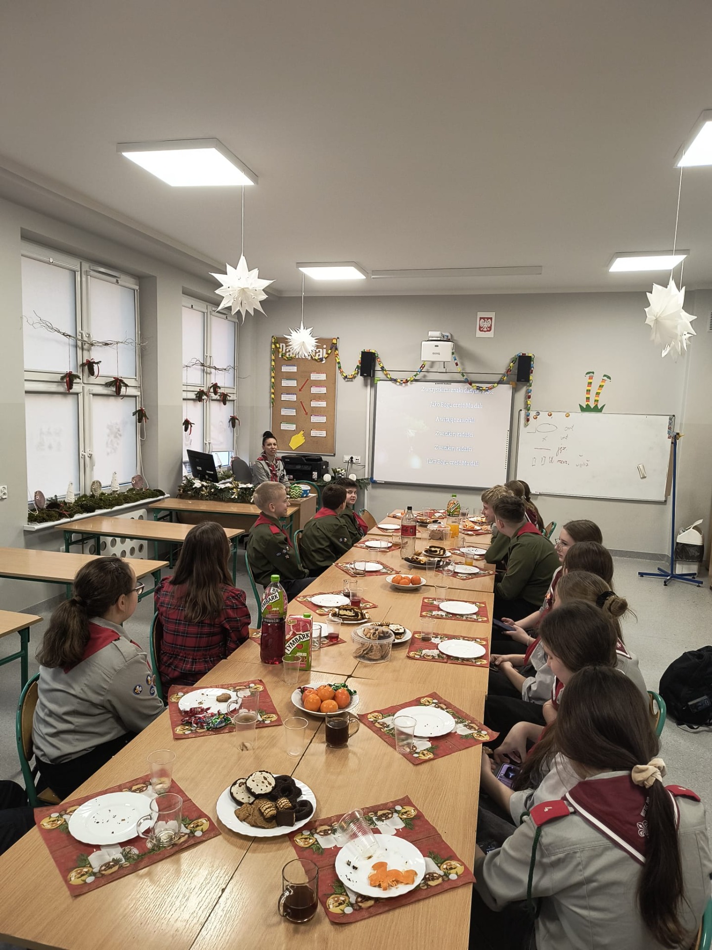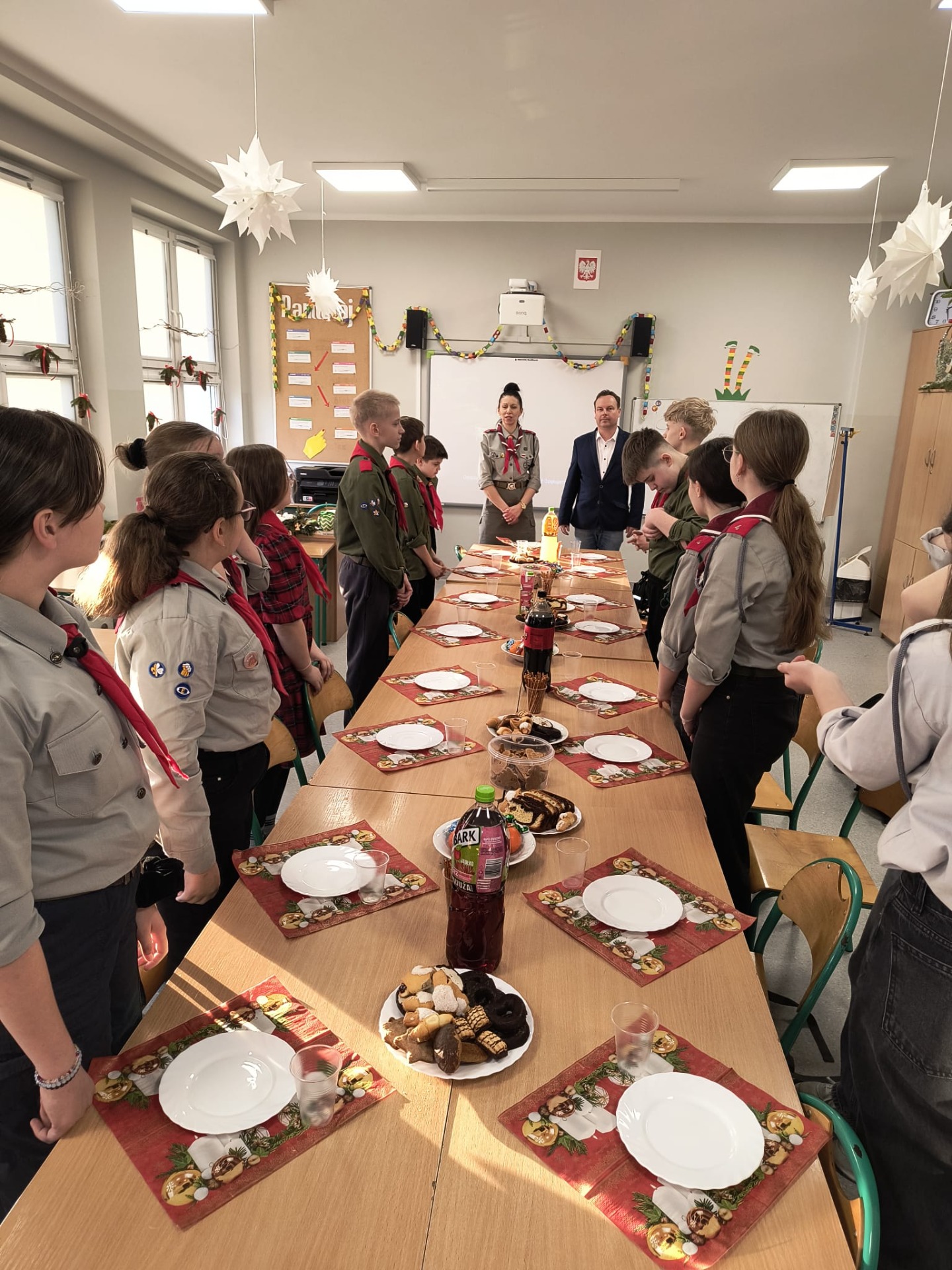 W środę 17 grudnia harcerze 4 DH „Dzierzby” spotkali się na tradycyjnej zbiórce wigilijnej. Dziewczyny z zastępu Bieliki wraz z drużynową przygotowały stół na uroczystość. Spotkanie rozpoczęło się od podzielenia się opłatkiem i złożenia sobie nawzajem świątecznych życzeń. Następnie harcerze zasiedli do stołu wigilijnego, na którym gościły łakocie przyniesione przez każdego członka drużyny. Drużynowa przypomniała zebranym historię i ideę akcji Betlejemskie Światło Pokoju oraz zapoznała ich z tegorocznym przesłaniem akcji: „Pielęgnuj dobro w sobie”. Po poczęstunku przyszedł czas na wspólne kolędowanie. Zastępy kolejno proponowały swoje ulubione kolędy, a śpiewała je cała drużyna. Każde wykonanie było nagradzanie okrzykiem harcerskim dla wybierającego zastępu. Ostatnim punktem wigilii, tradycyjnie od wielu lat, była zabawa w „Puszkę Pandory”, która jak zawsze dostarczyła wielu emocji i śmiechu.