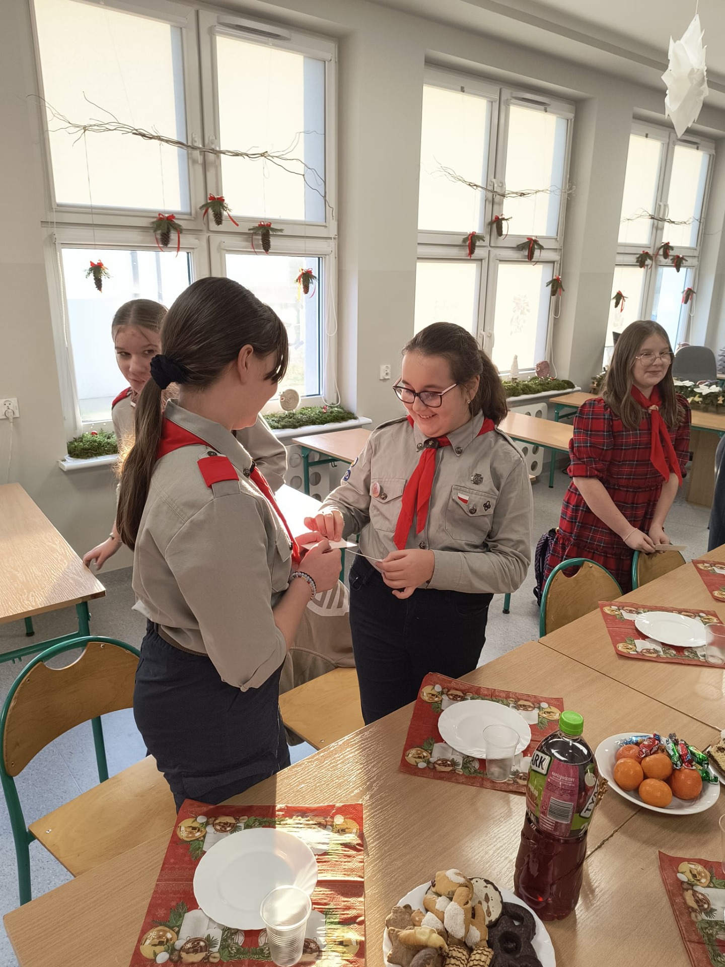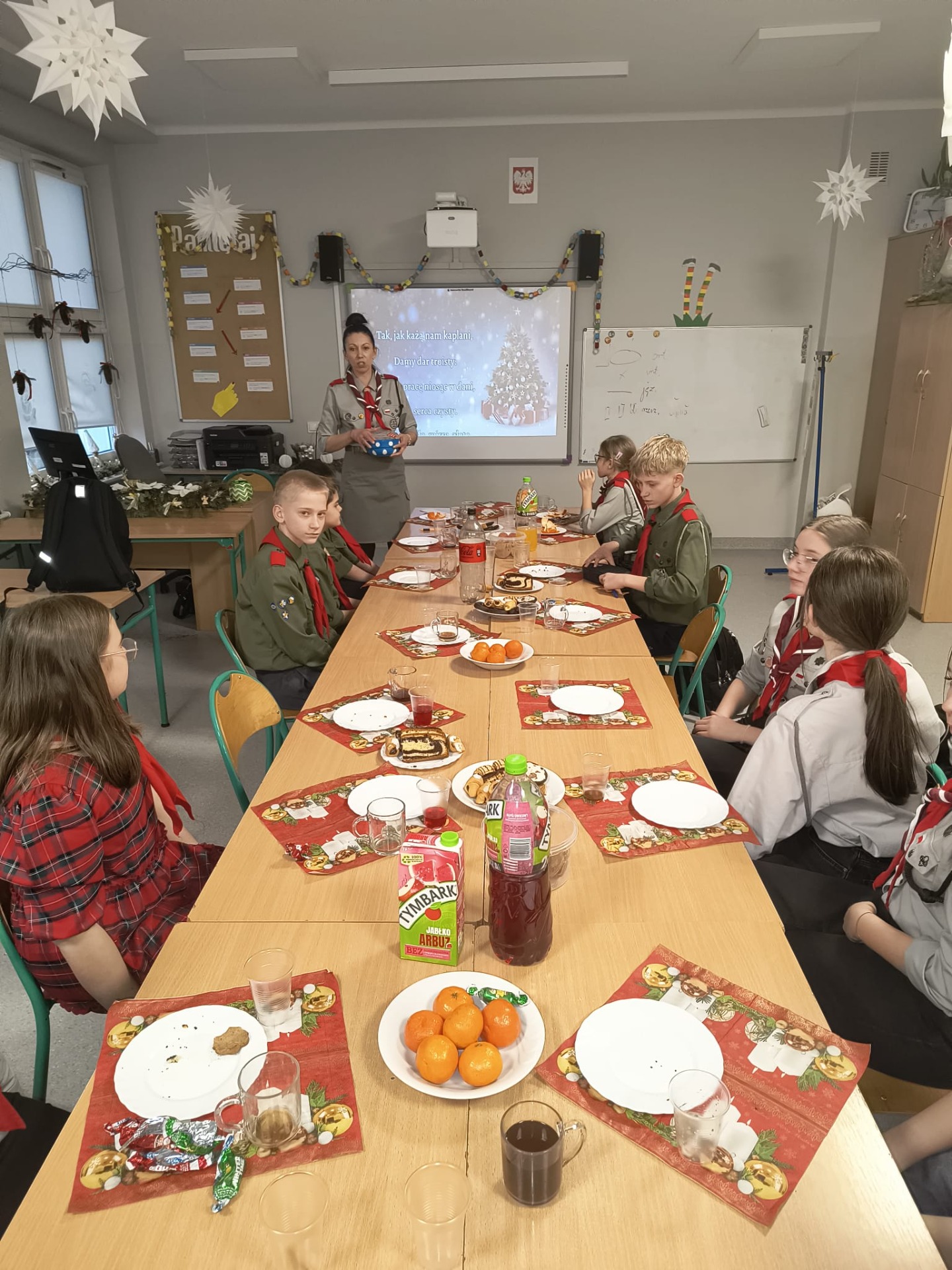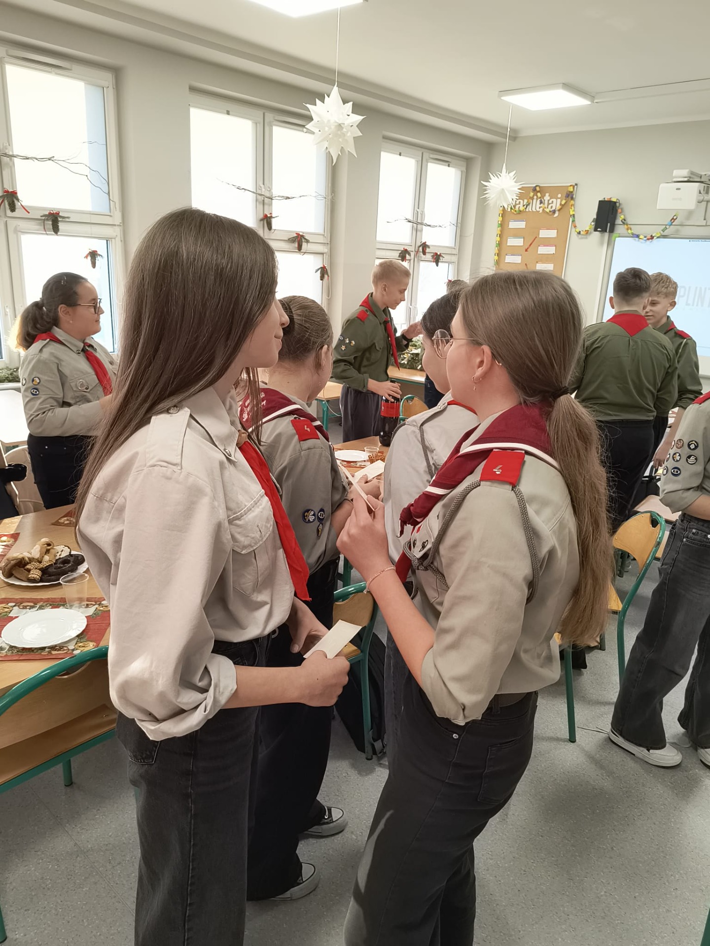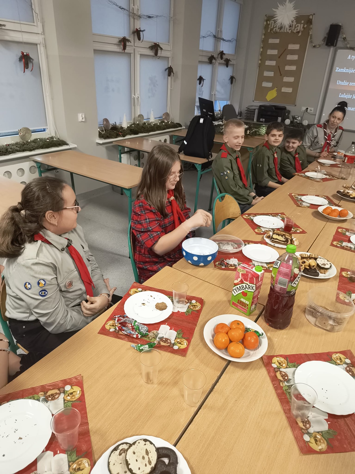 W środę 17 grudnia harcerze 4 DH „Dzierzby” spotkali się na tradycyjnej zbiórce wigilijnej. Dziewczyny z zastępu Bieliki wraz z drużynową przygotowały stół na uroczystość. Spotkanie rozpoczęło się od podzielenia się opłatkiem i złożenia sobie nawzajem świątecznych życzeń. Następnie harcerze zasiedli do stołu wigilijnego, na którym gościły łakocie przyniesione przez każdego członka drużyny. Drużynowa przypomniała zebranym historię i ideę akcji Betlejemskie Światło Pokoju oraz zapoznała ich z tegorocznym przesłaniem akcji: „Pielęgnuj dobro w sobie”. Po poczęstunku przyszedł czas na wspólne kolędowanie. Zastępy kolejno proponowały swoje ulubione kolędy, a śpiewała je cała drużyna. Każde wykonanie było nagradzanie okrzykiem harcerskim dla wybierającego zastępu. Ostatnim punktem wigilii, tradycyjnie od wielu lat, była zabawa w „Puszkę Pandory”, która jak zawsze dostarczyła wielu emocji i śmiechu.