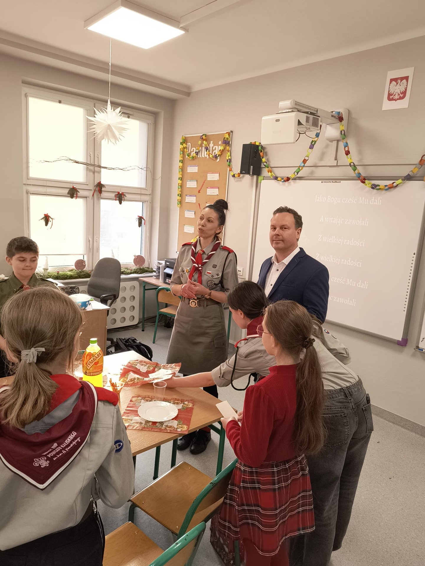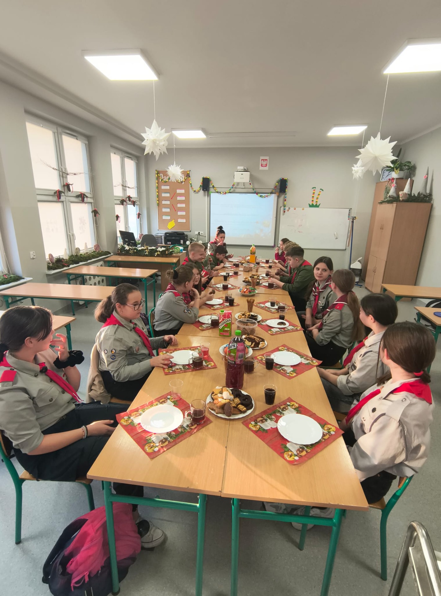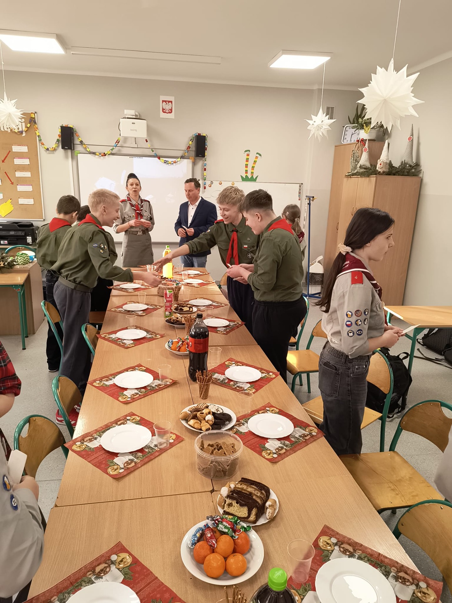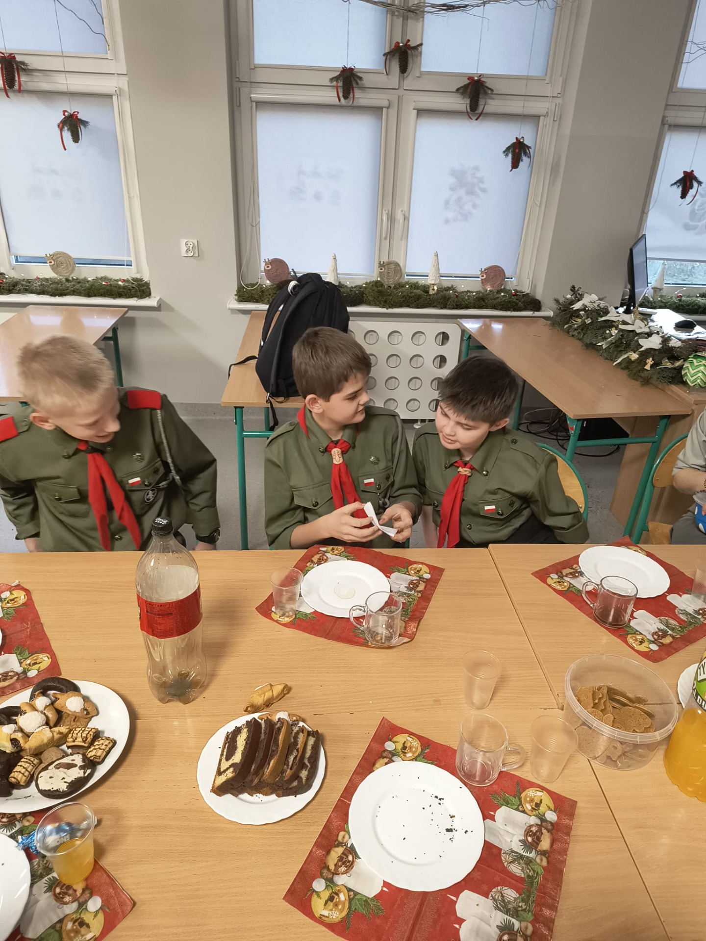 W środę 17 grudnia harcerze 4 DH „Dzierzby” spotkali się na tradycyjnej zbiórce wigilijnej. Dziewczyny z zastępu Bieliki wraz z drużynową przygotowały stół na uroczystość. Spotkanie rozpoczęło się od podzielenia się opłatkiem i złożenia sobie nawzajem świątecznych życzeń. Następnie harcerze zasiedli do stołu wigilijnego, na którym gościły łakocie przyniesione przez każdego członka drużyny. Drużynowa przypomniała zebranym historię i ideę akcji Betlejemskie Światło Pokoju oraz zapoznała ich z tegorocznym przesłaniem akcji: „Pielęgnuj dobro w sobie”. Po poczęstunku przyszedł czas na wspólne kolędowanie. Zastępy kolejno proponowały swoje ulubione kolędy, a śpiewała je cała drużyna. Każde wykonanie było nagradzanie okrzykiem harcerskim dla wybierającego zastępu. Ostatnim punktem wigilii, tradycyjnie od wielu lat, była zabawa w „Puszkę Pandory”, która jak zawsze dostarczyła wielu emocji i śmiechu.