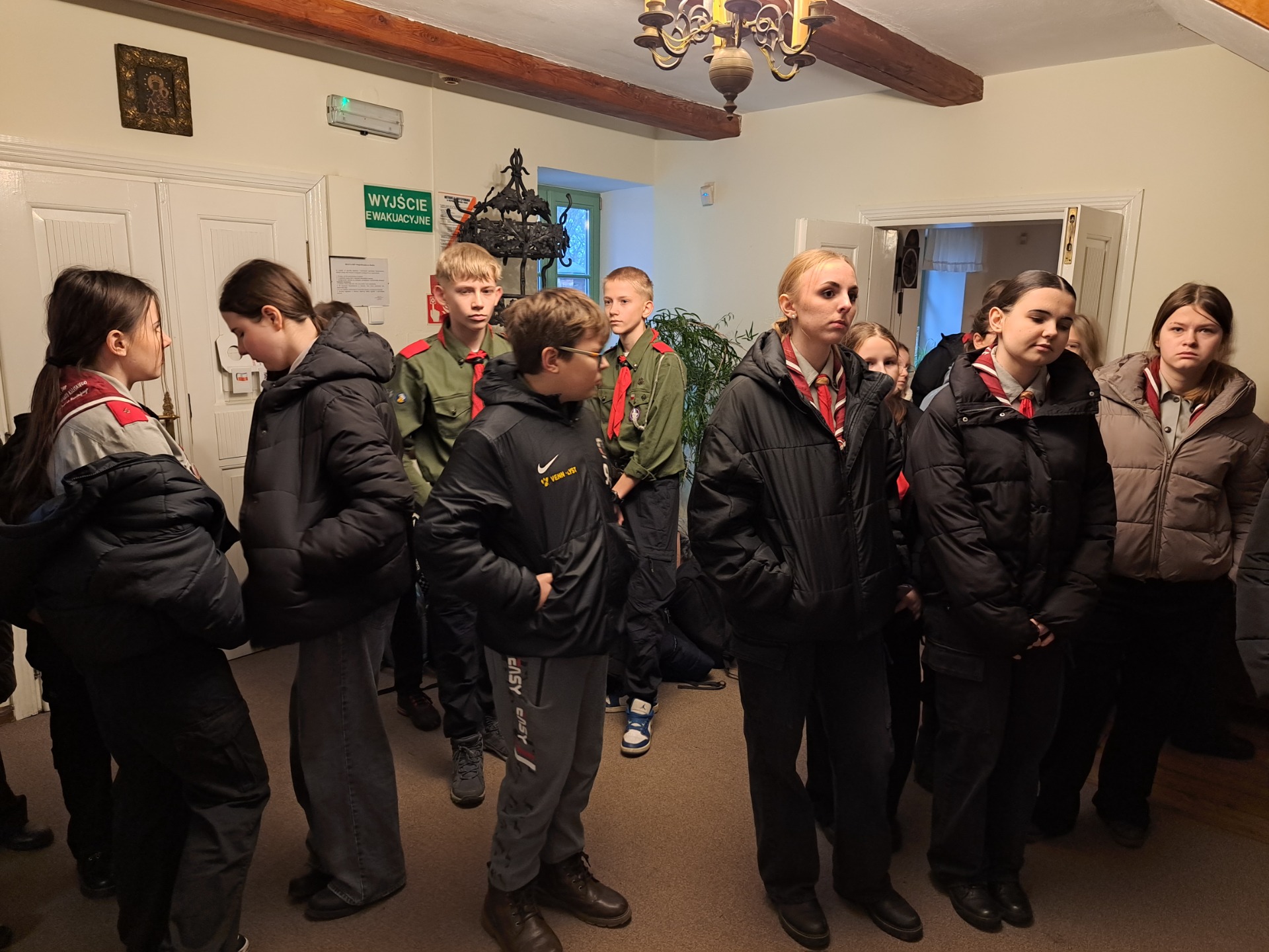 W sobotę 20 grudnia 13 harcerzy 4 DH „Dzierzby” pod opieką drużynowej uczestniczyło w wycieczce Hufca ZHP Powiatu Kaliskiego po Betlejemskie Światło Pokoju. Tym razem przekazanie BŚP zaplanowano w Koninie. Korzystając z pobytu w tym mieście harcerze zwiedzili Centrum Edukacji i Rozrywki Park Makiet Mikroskala, gdzie obejrzeli około 50 różnych makiet o charakterze edukacyjnym i rozrywkowym. Przedstawiają one sceny z popularnych filmów, obrazy z historii Polski, świata i Konina. Zwiedzając Mikroskalę harcerze rozwiązywali quiz interaktywny, za udział w którym otrzymali drobne upominki od właściciela obiektu. Następnie harcerze udali się do położonego nieopodal Muzeum Okręgowego, gdzie zwiedzili Zamek, Dworek oraz Spichlerz. Największe wrażenie zrobiła na nich makieta słonia leśnego w skali 1:1, którego szczątki znaleziono podczas prac odkrywkowych w Kopalni Węgla Brunatnego „Konin”, na terenie odkrywki „Jóźwin”. Harcerze również z ogromnym zainteresowaniem obejrzeli wystawę „Mam szczerą wolę całym życiem pełnić służbę… 110-lecie harcerstwa na ziemi konińskiej”, ukazującą burzliwe losy konińskiego harcerstwa, które od 110 lat kształtuje i wychowuje kolejne pokolenia dzieci i młodzieży. I właśnie przed budynkiem Spichlerza, w którym znajduje się wystawa, odbyło się uroczyste przekazanie Betlejemskiego Światła Pokoju. Otrzymaliśmy je z rąk phm. Antoniego Sucharskiego, Zastępcy Komendanta Hufca Konin ds. Organizacyjnych.